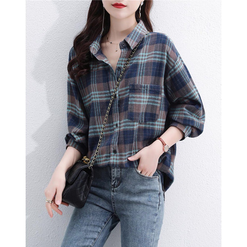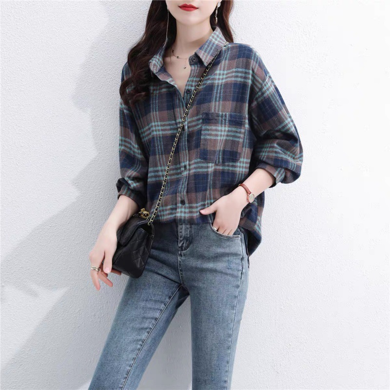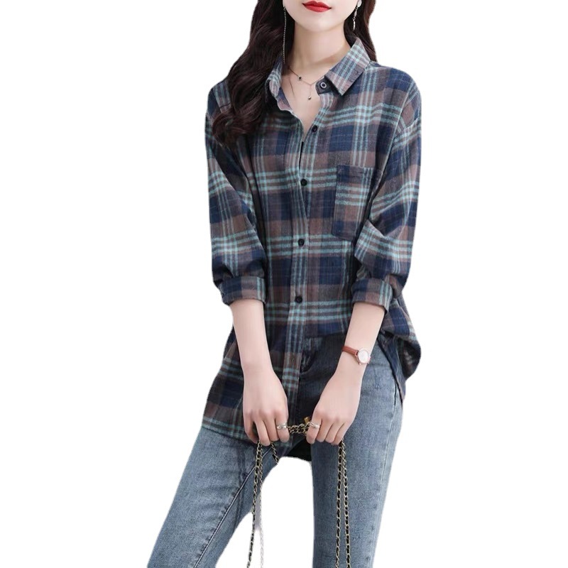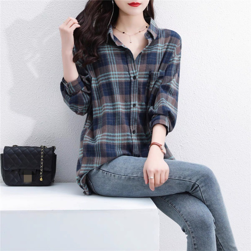 Главная страница > Осень 2023 Новая Художественная Свободная Повседневная клетчатая рубашка с длинными рукавами, женская рубашка, Топ #8198