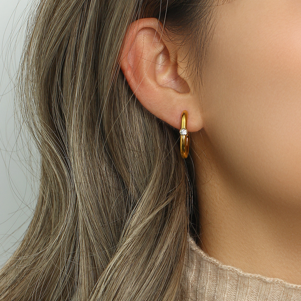 Европейские и американские трансграничные горячие продажи персонализированные минималистские серьги ювелирные изделия из нержавеющей стали с покрытием 18K золотой циркон U-образные ушные застежки
