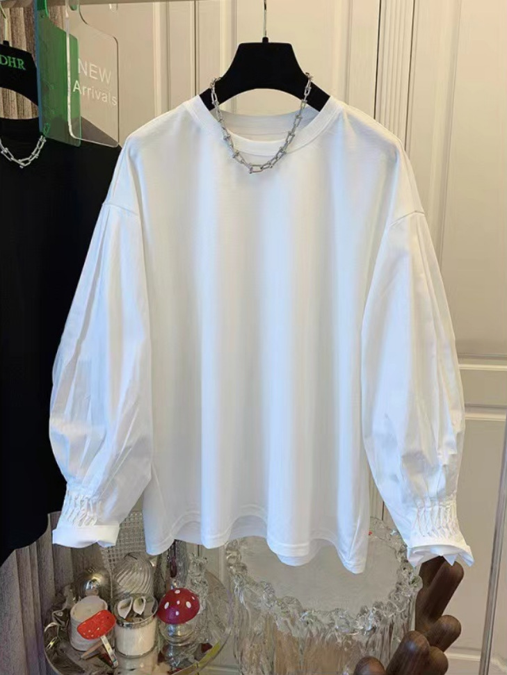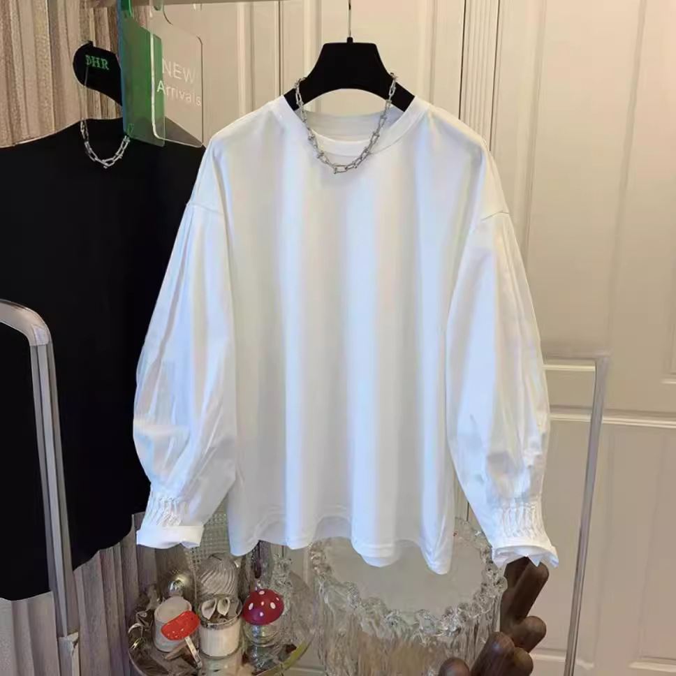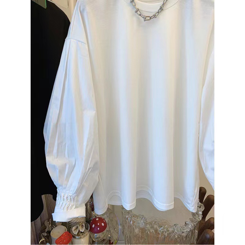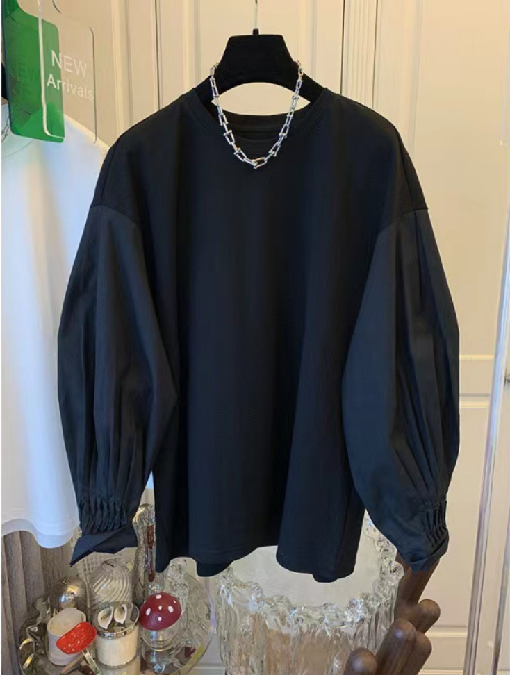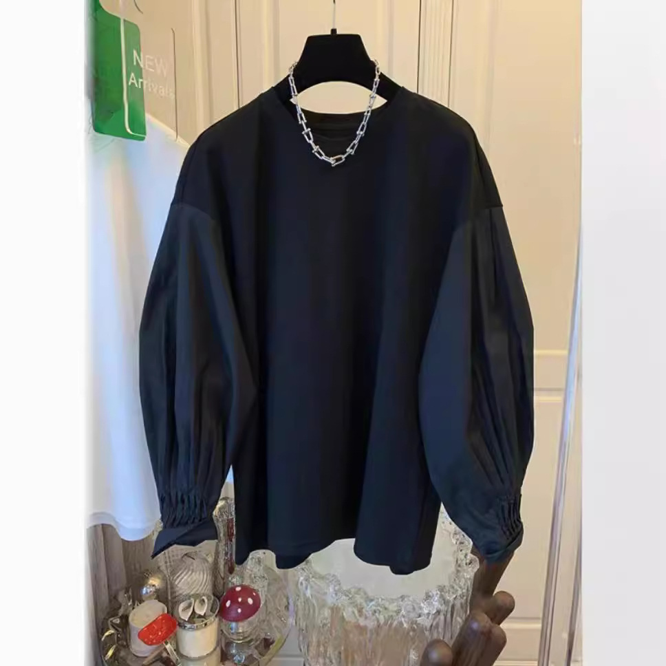 Главная страница > Женская плиссированная лоскутная рубашка-свитшот, свободный повседневный базовый топ с коротким рукавом, осень 2023, в литературном стиле Гонконга