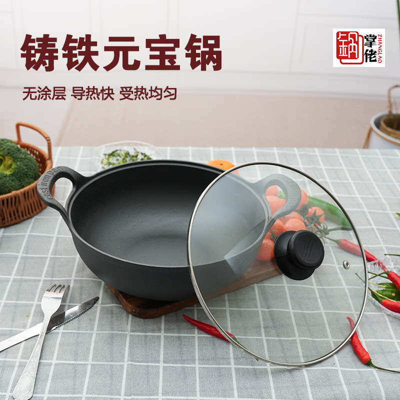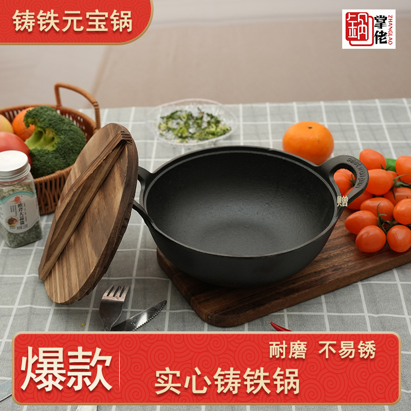 Главная страница > Чугунный горшок для тушения с двумя ручками, утолщенный, кастрюля для супа, домашняя маленькая сковорода вок, сковорода без покрытия с антипригарным эффектом