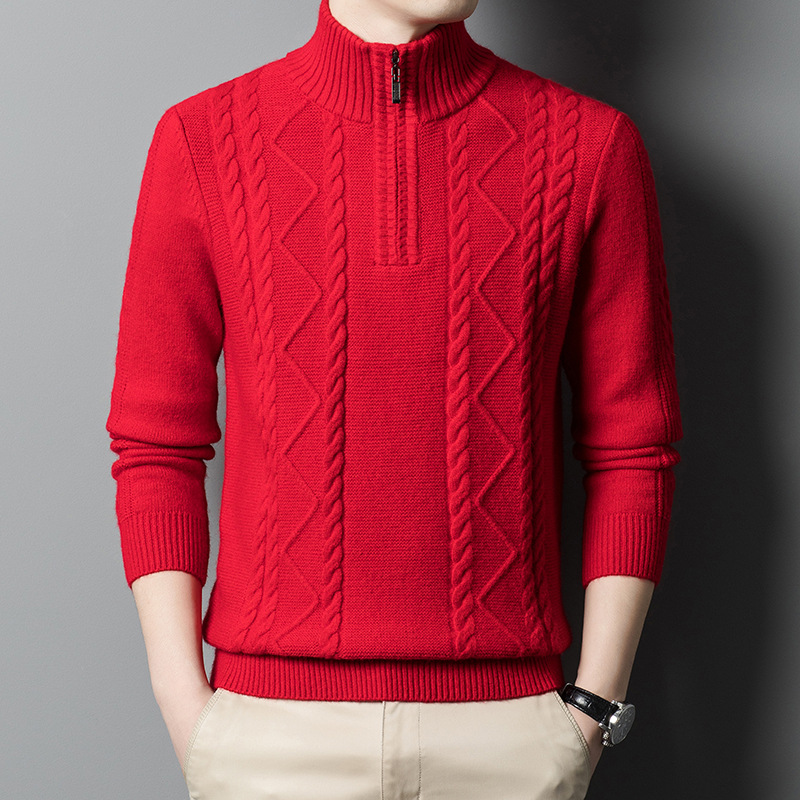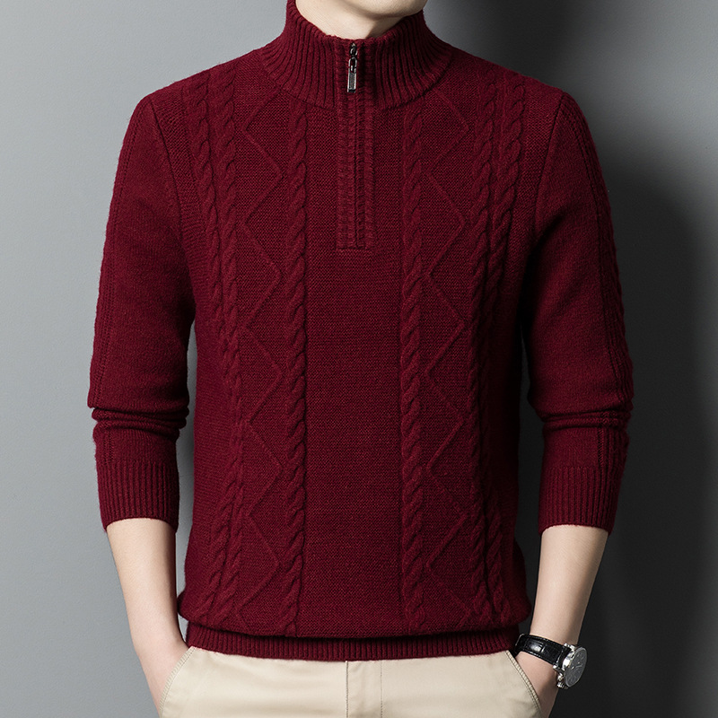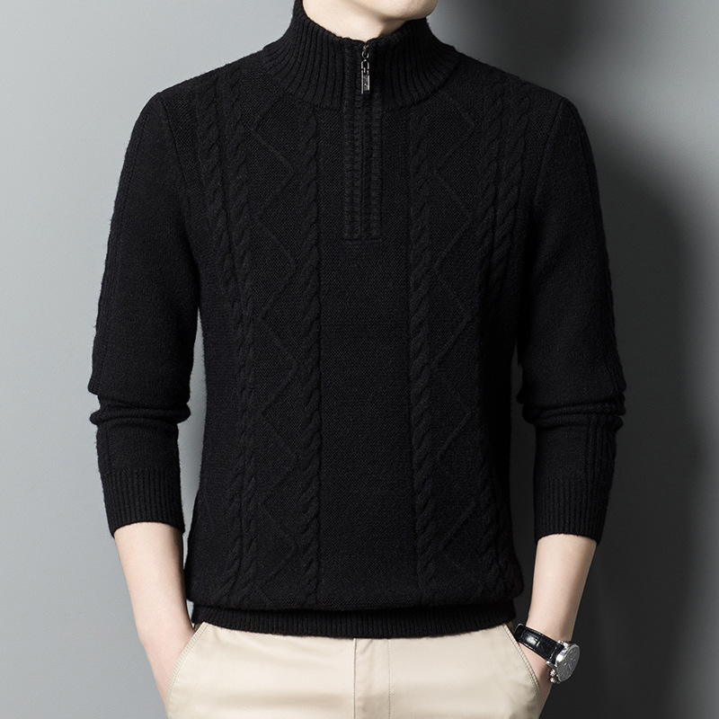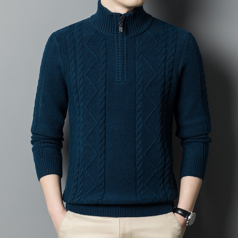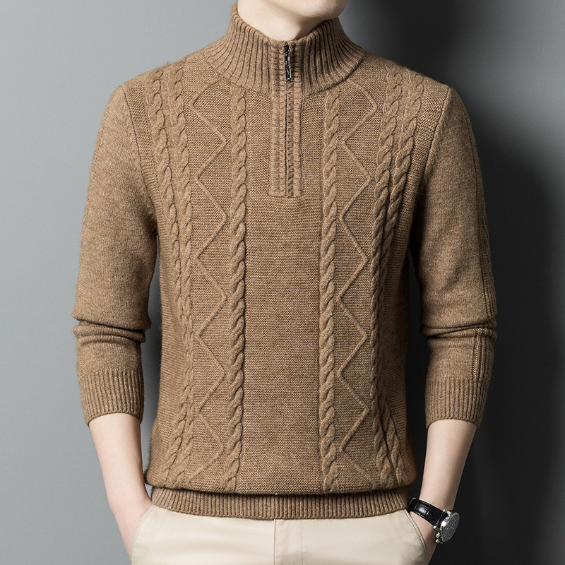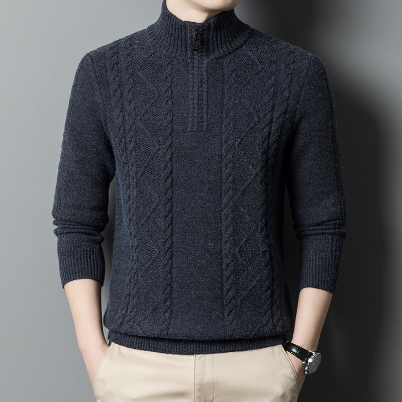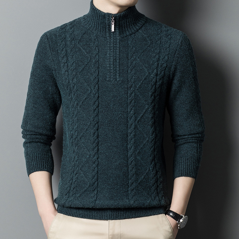 Главная страница > Новый зимний кашемировый свитер с высоким воротом для мужчин среднего возраста, утолщенный теплый вязаный базовый свитер с короткой молнией для папы
