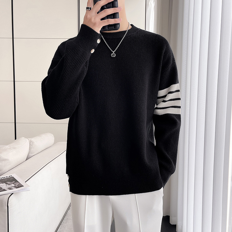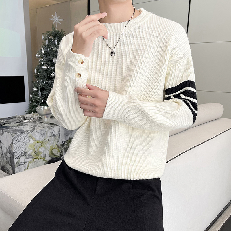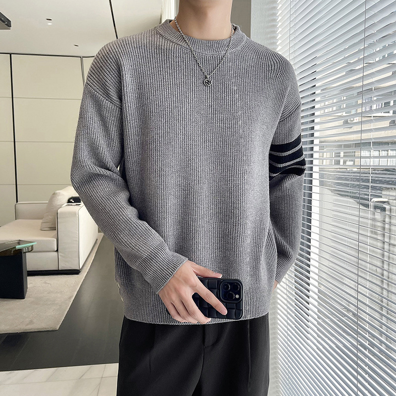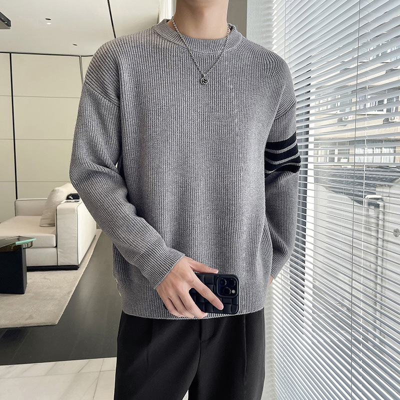 Главная страница > Свитер с круглым вырезом, мужской весенне-осенний модный бренд, однотонная нижняя рубашка с длинными рукавами, повседневный мужской шерстяной свитер в Корейском стиле