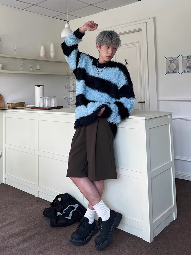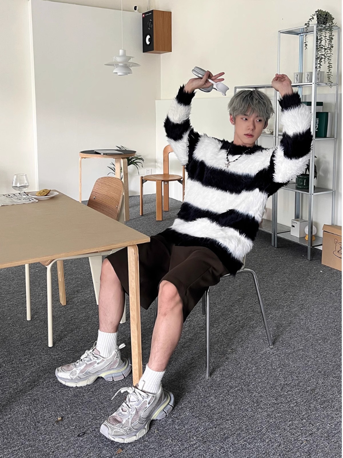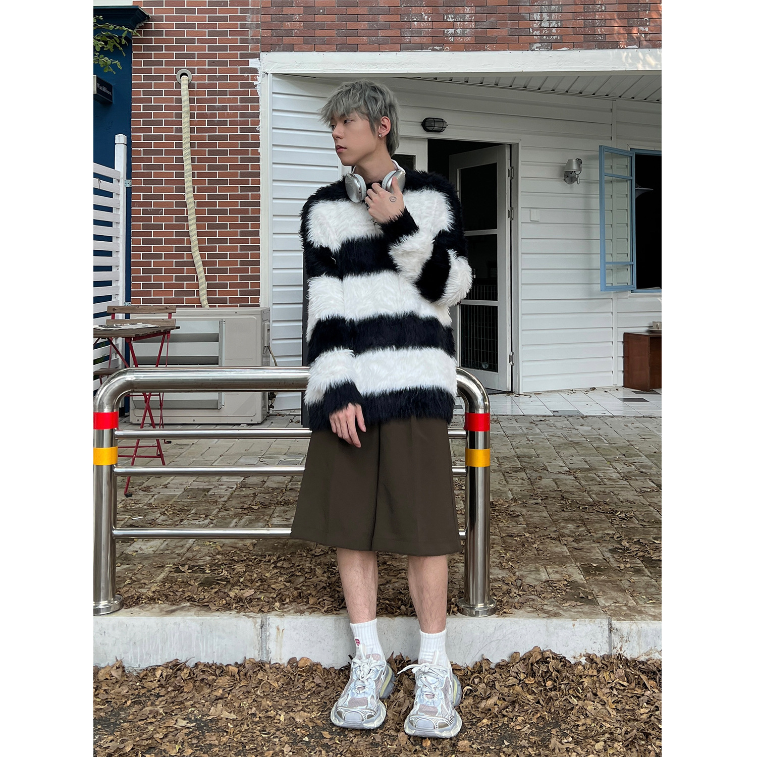 Главная страница > Американский ленивый полосатый норок плюшевый мягкий клейкий трикотажный свитер мужской oversize модный дикий топ
