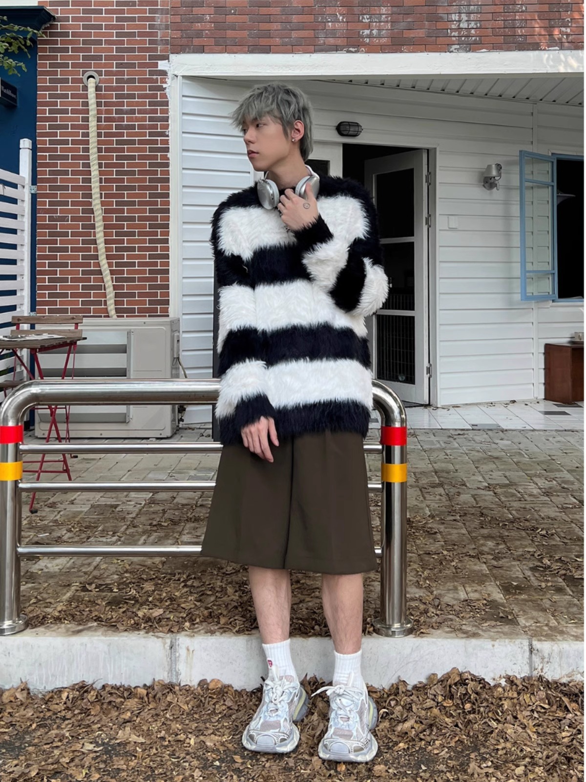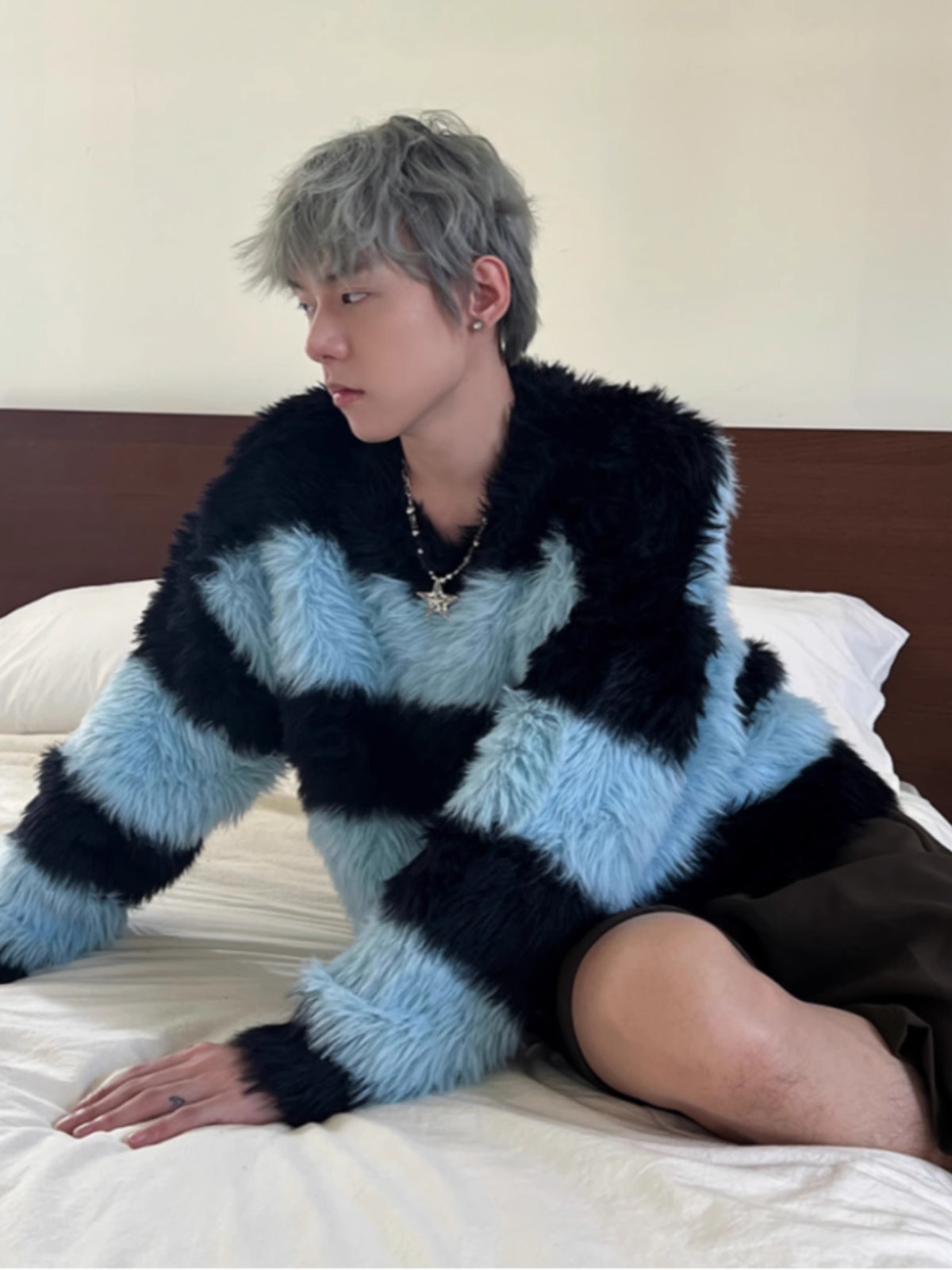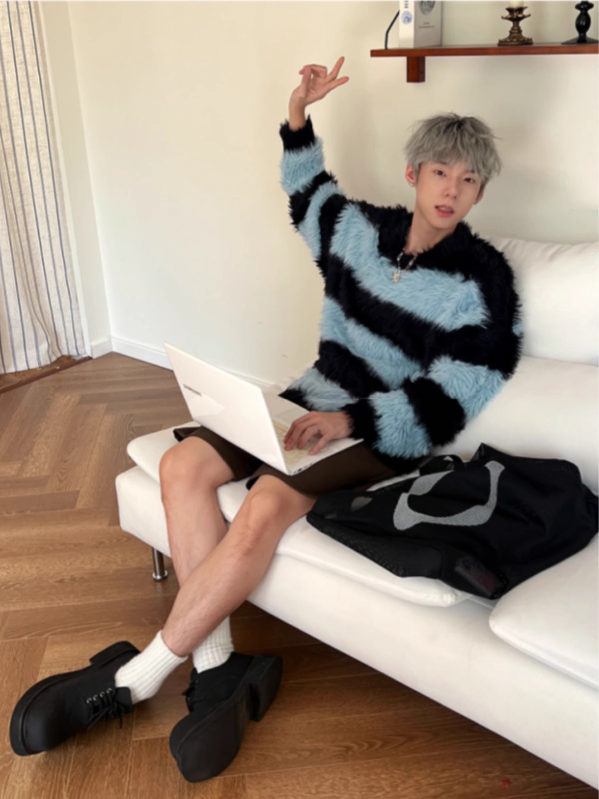 Главная страница > Американский ленивый полосатый норок плюшевый мягкий клейкий трикотажный свитер мужской oversize модный дикий топ