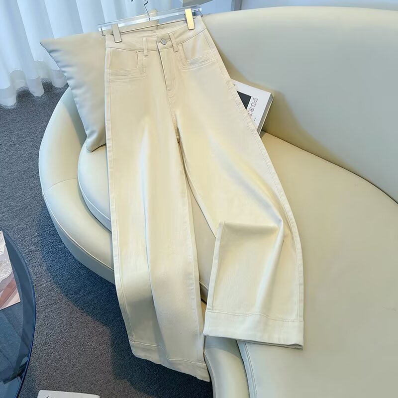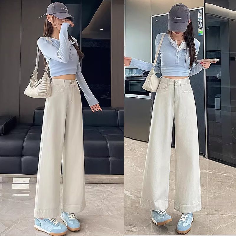 Главная страница > Эксклюзивные женские широкие джинсы цвета хлопчатобумажной ткани, весна-лето 2025, свободные, стройнящие, с драпировкой, прямые, модные