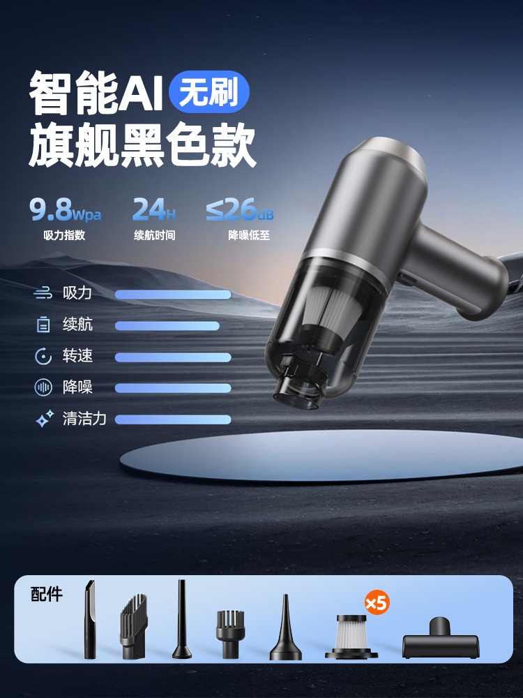 Черный [Флагманская модель из чистой меди]105000Мощность всасывания/фильтрующий элемент*5/всасывание, продувка, зарядка и перекачка 4-в-1/