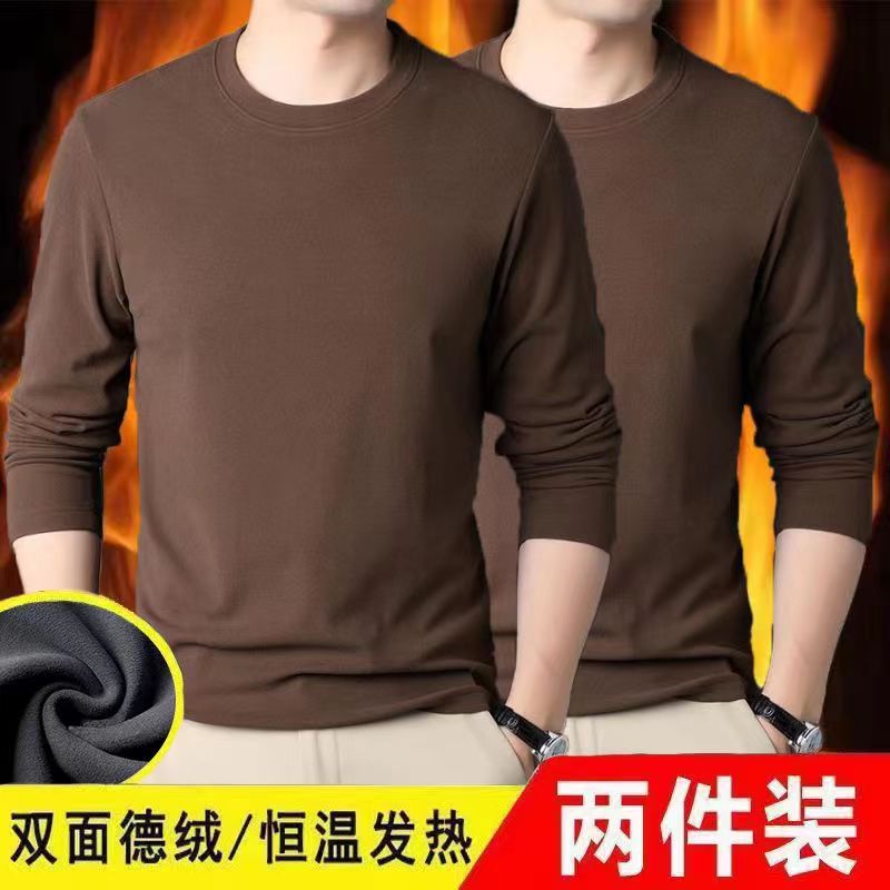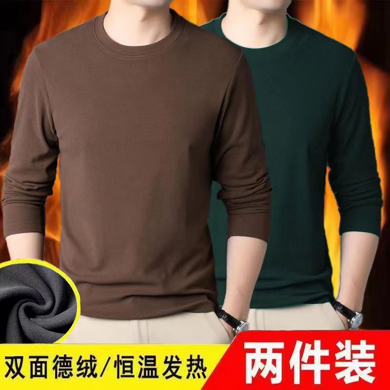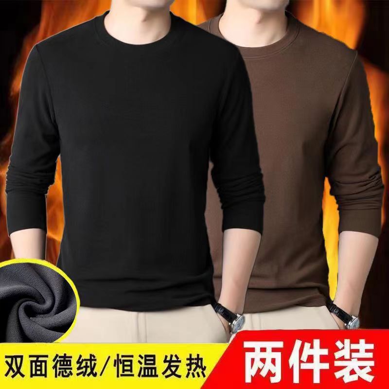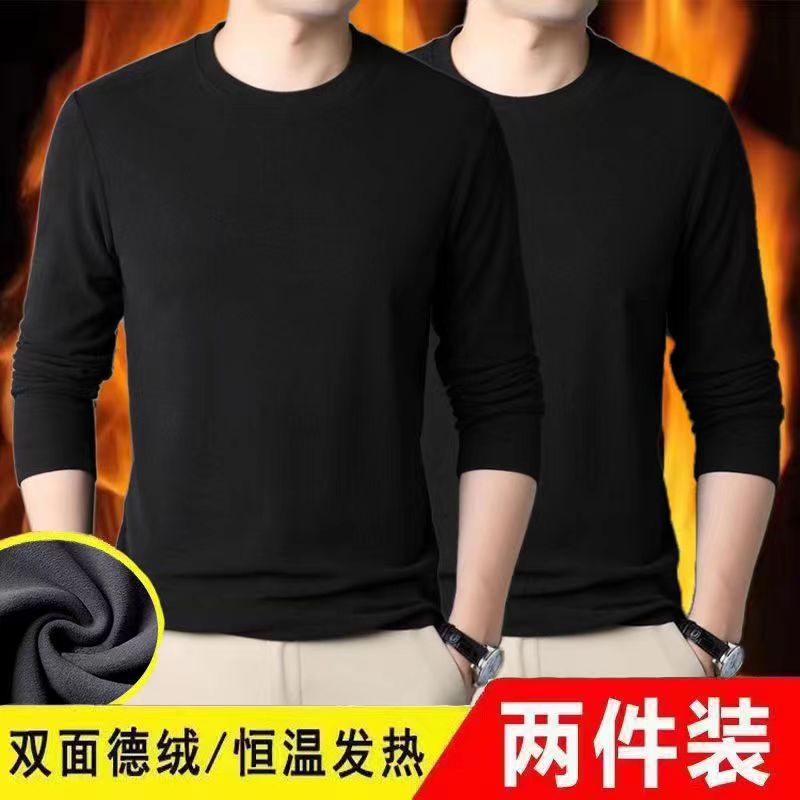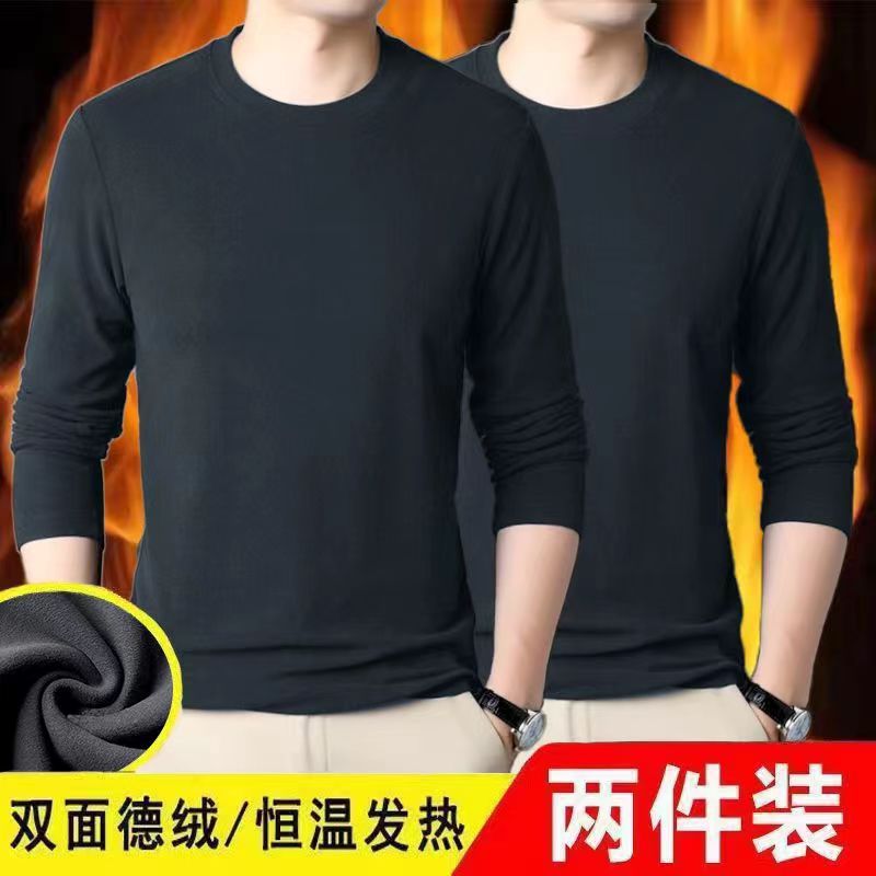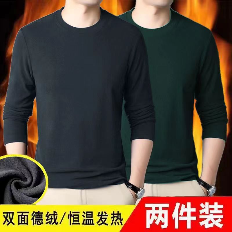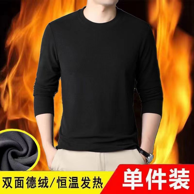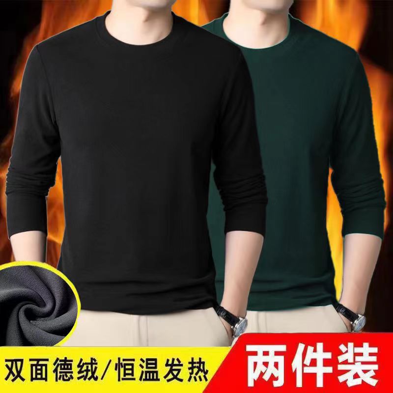 Главная страница > Осенняя одежда Двусторонняя бархатная футболка с постоянным нагревом и длинными рукавами, модная универсальная Однотонная рубашка с круглым вырезом, мужское термобелье