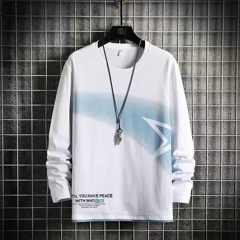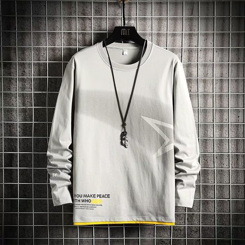 Главная страница > Простая Мужская свободная футболка с длинными рукавами, осень, новый стиль, 2022, внутренняя Базовая рубашка, пуловер с круглым вырезом, модный брендовый топ с принтом