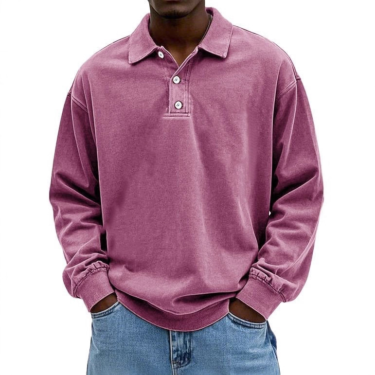 Главная страница > Новая мужская футболка-поло с длинным рукавом в европейском и американском стиле, модель 2025 года, для трансграничной торговли на Amazon, с эффектом потертости и выцветания