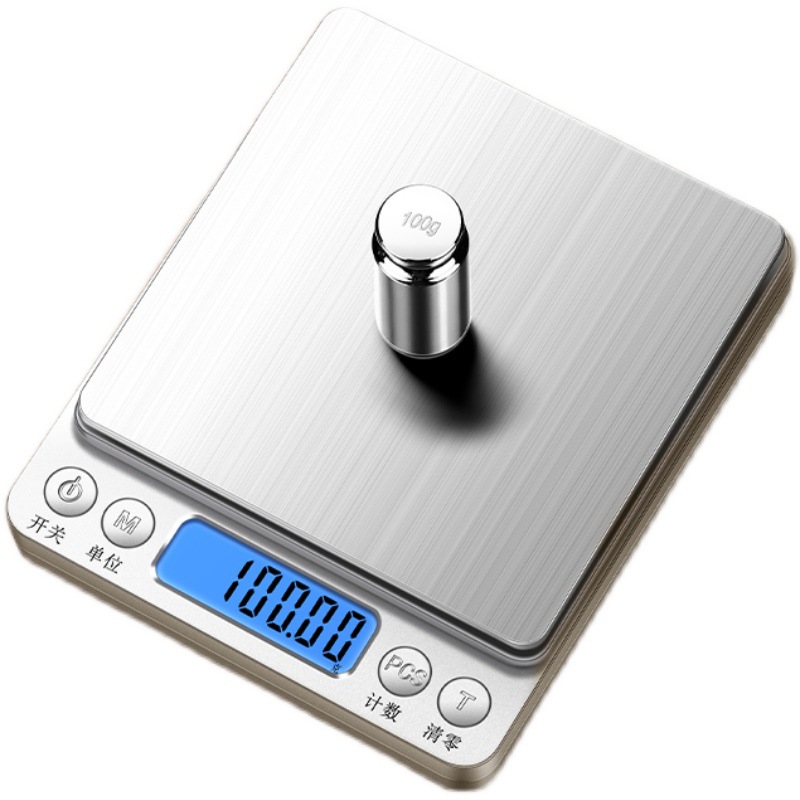 - (Точная) Модель для зарядки 500 г/0,01 г с 2 лотками + кабель для зарядки + водонепроницаемая наклейка