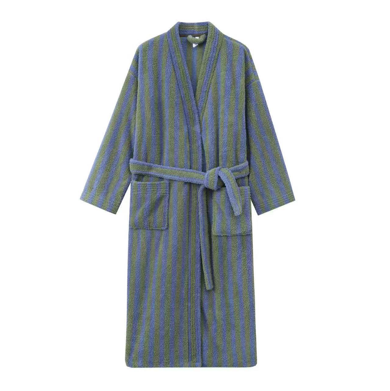Мужской темно-зеленый однотонный бархатный халат в полоску риса