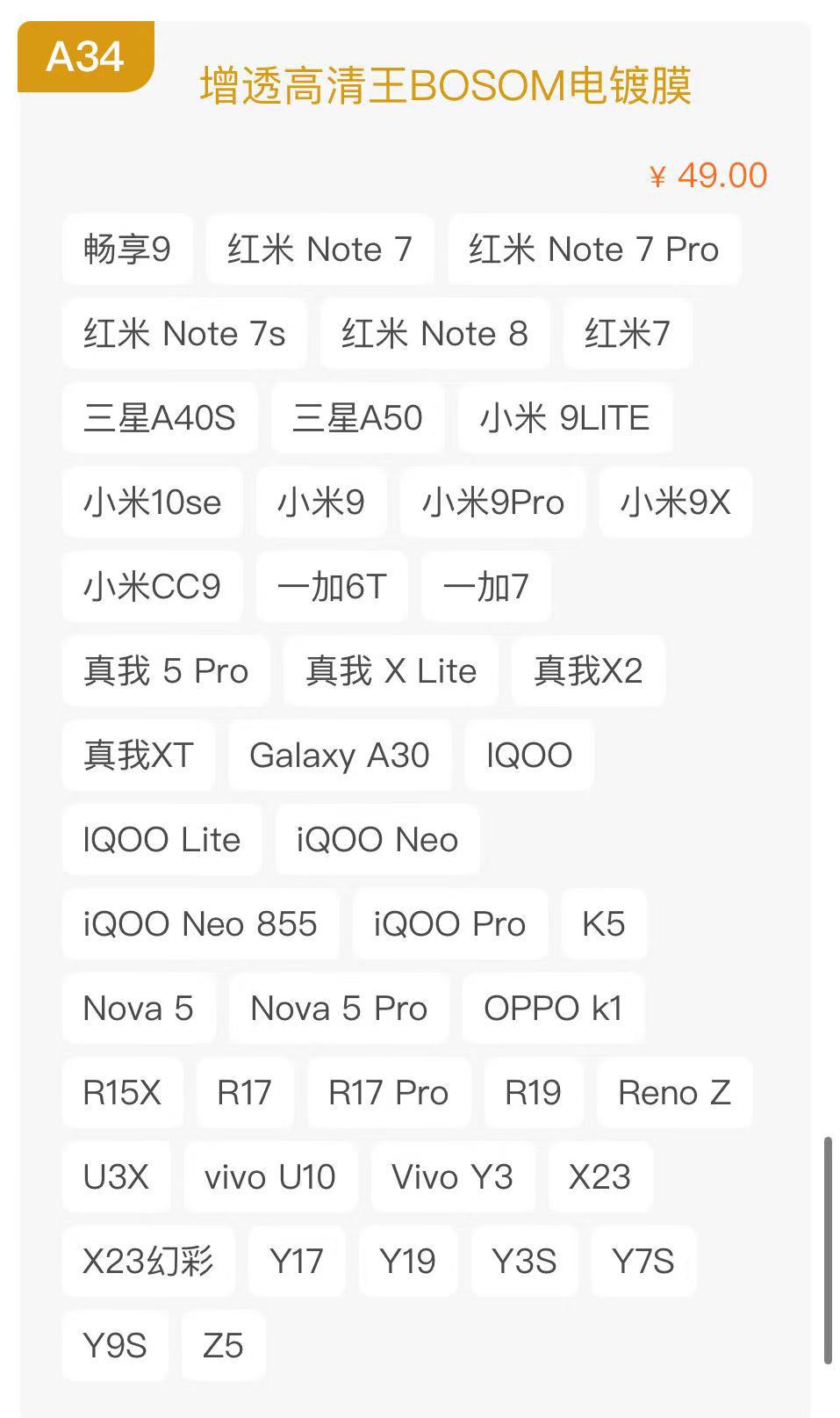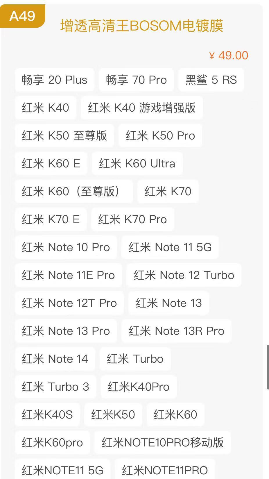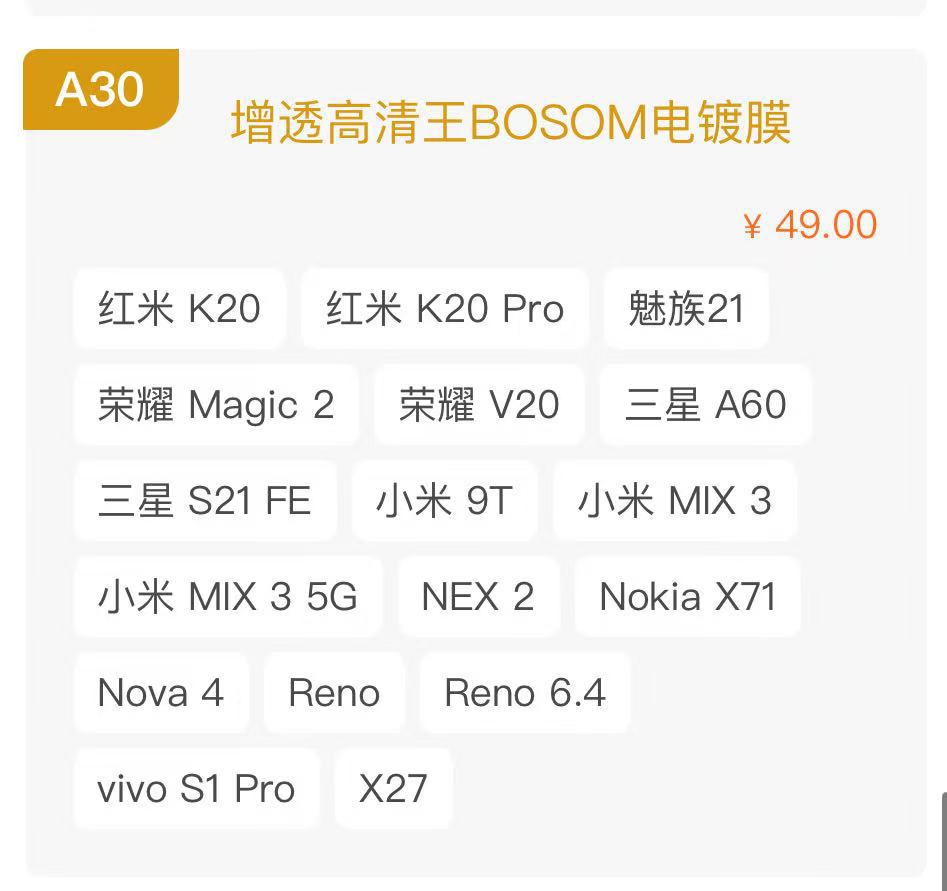 Основная модель A66 — Redmi K30 (антибликовая гальваническая пленка HD BOSOM).