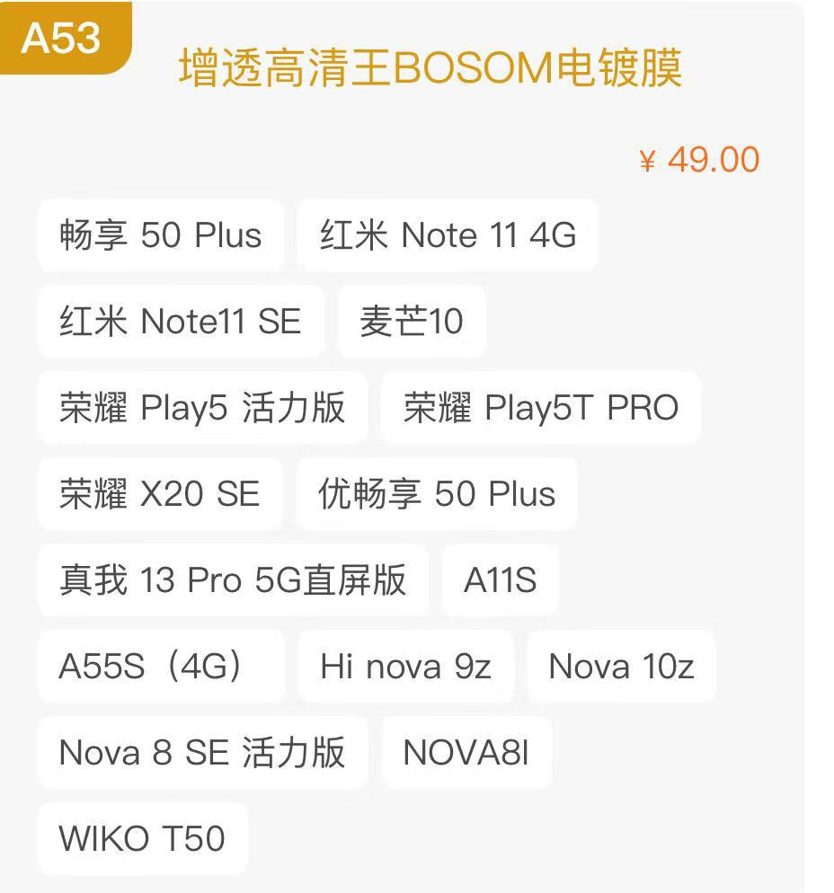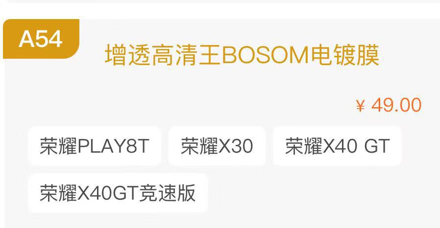 Основная модель A54` Honor X30 (гальваническая пленка AR HD BOSOM)