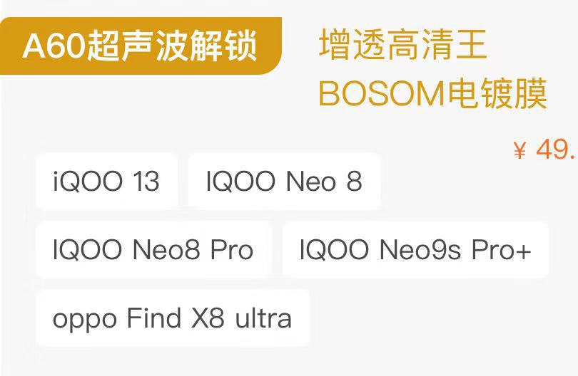 Основная модель A60` IQOO13 [ультразвуковая разблокировка] (гальваническая пленка AR HD BOSOM)