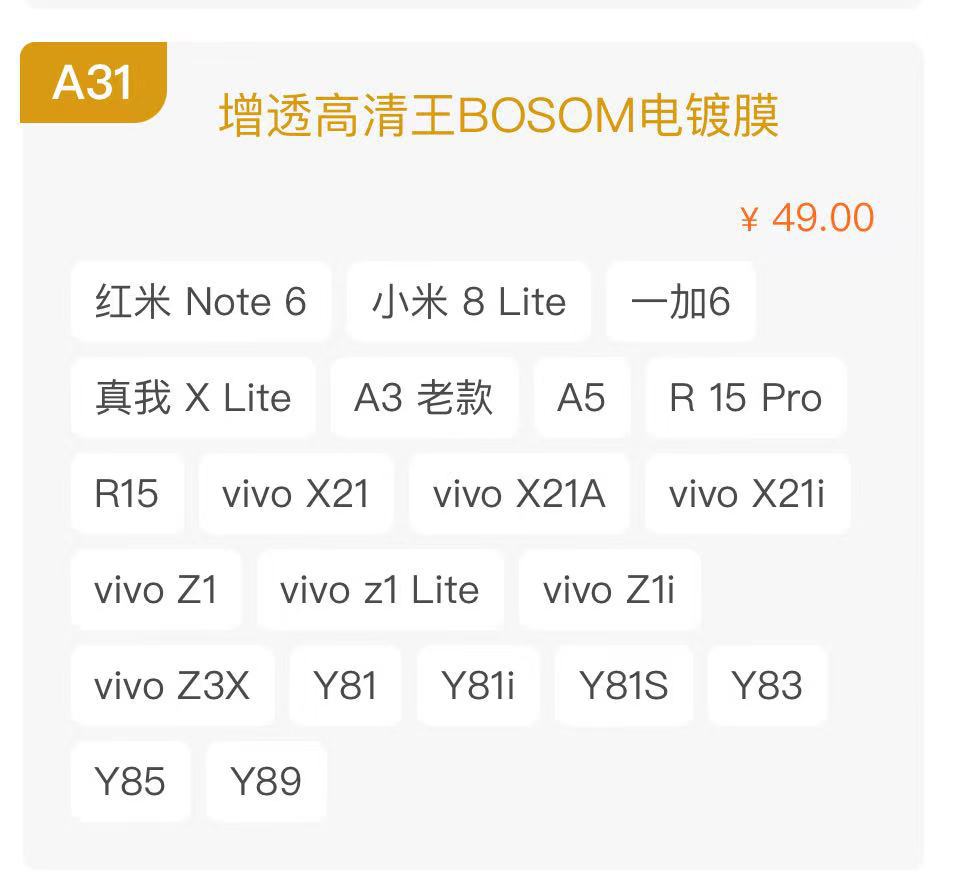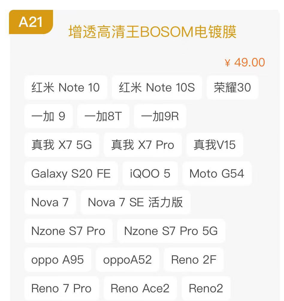 A31` основная модель X21 (гальваническая пленка BOSOM высокой четкости AR)
