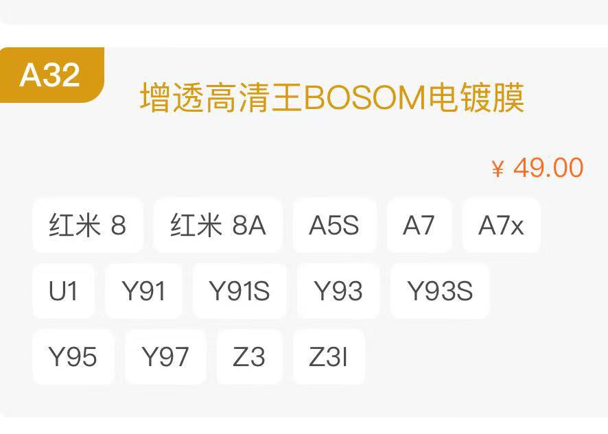 A32` основная модель Y93 (гальваническая пленка AR высокой четкости BOSOM)