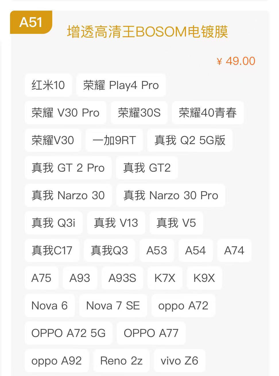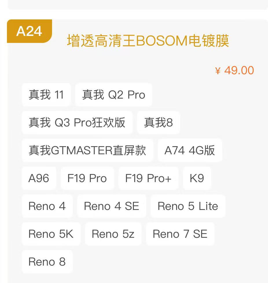 Основная модель A72 OPPOK13Turbo·pro (антибликовая HD-пленка с гальваническим покрытием BOSOM)