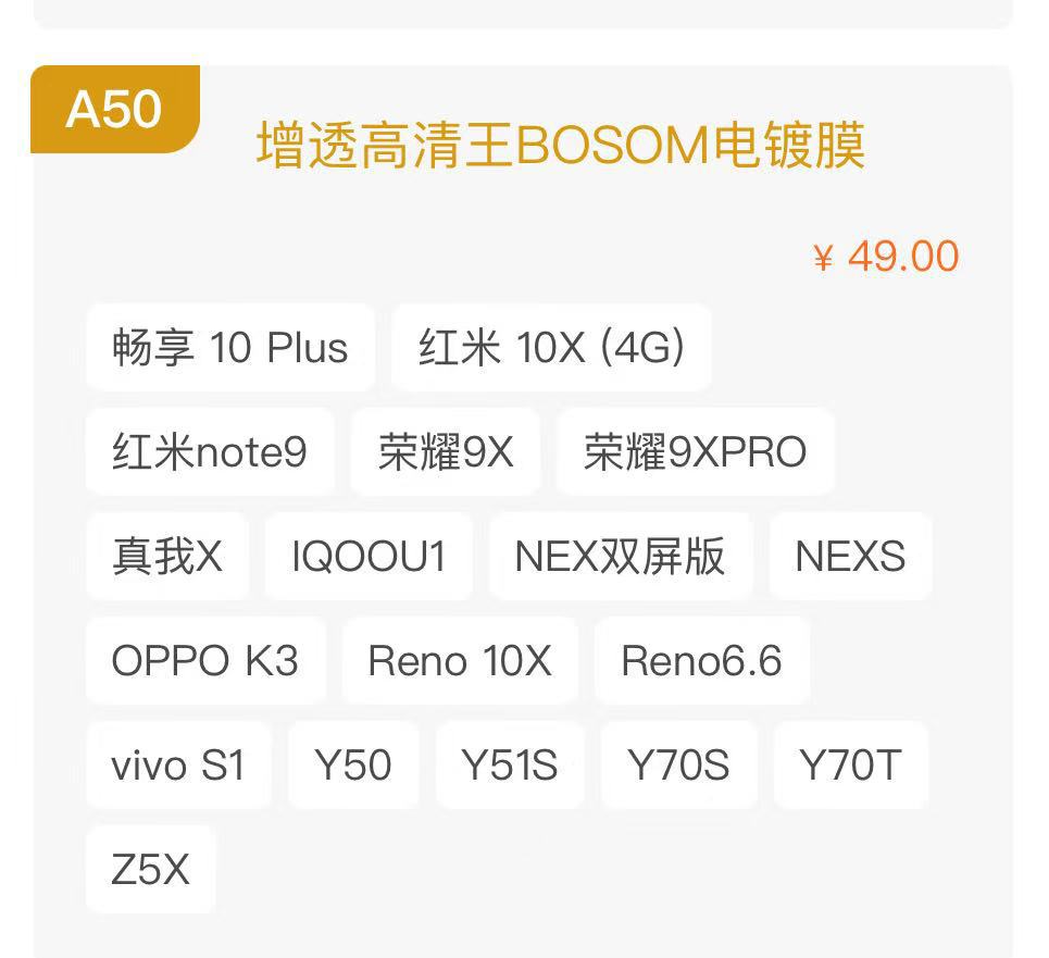 Основная модель A50` Honor 9X (гальваническая пленка AR HD BOSOM)