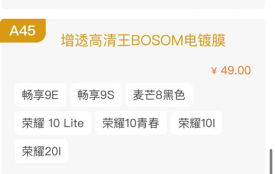 Основная модель A45` Honor 10 Youth (гальваническая пленка AR HD BOSOM)
