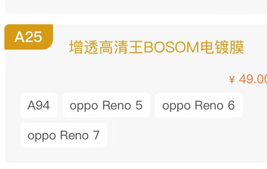 A23` основная модель RENO3 (AR гальваническая пленка BOSOM высокой четкости)