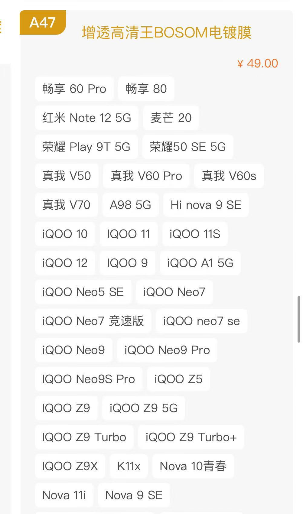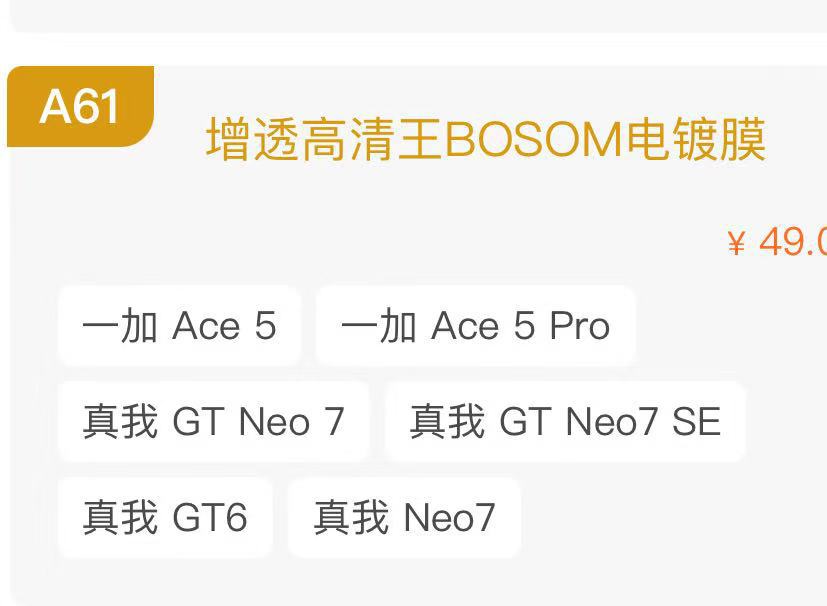 Основная модель A61` OnePlus ACE5 (гальваническая пленка AR HD BOSOM)
