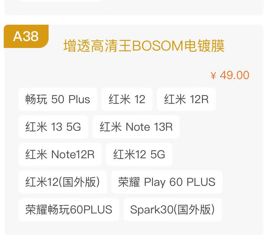 Основная модель A38` Redmi 12 (гальваническая пленка AR HD BOSOM)