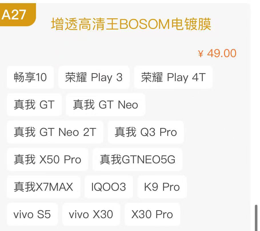 A30` основная модель X27 (гальваническая пленка AR HD BOSOM)