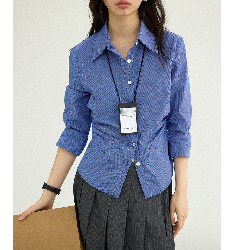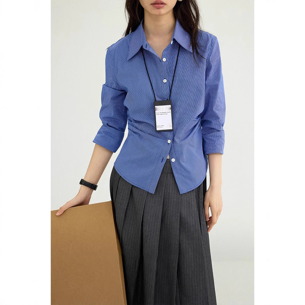 Главная страница > Предварительная продажа, модная плиссированная элегантная рубашка с длинными рукавами в стиле ретро для женщин, ранняя весна, топ для похудения талии