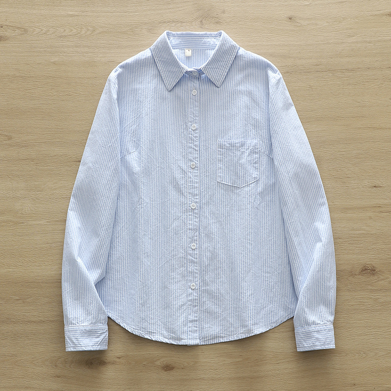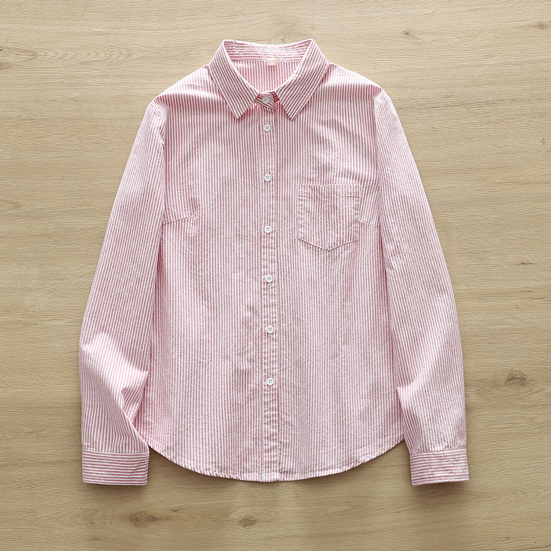 2024 осень повседневная минималистская оксфордская рубашка свободная полоска с нижней рубашкой женская топ оптом