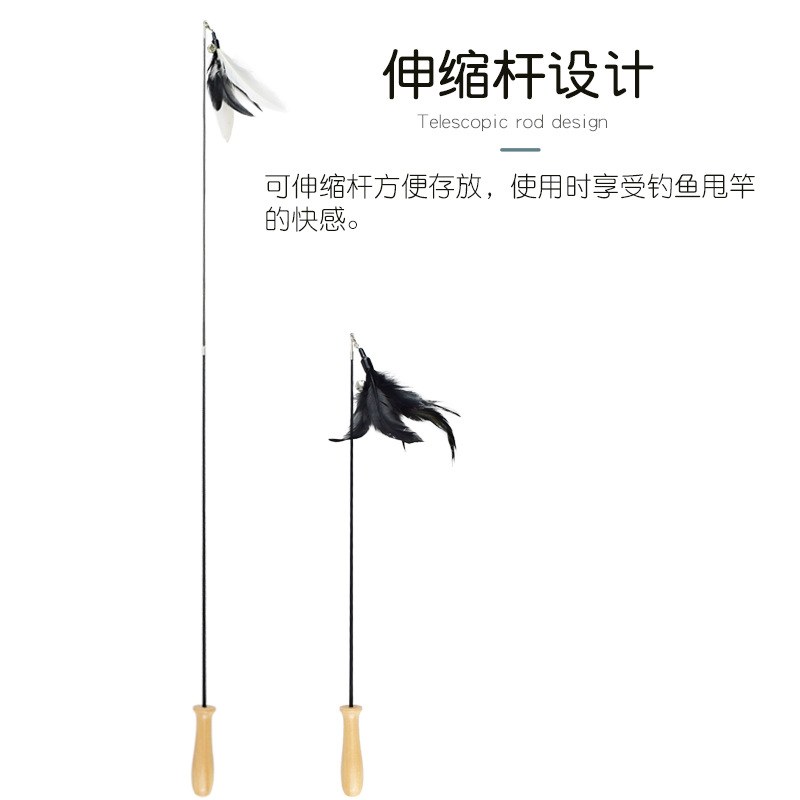 Прямые продажи с фабрики деревянная ручка двухсекционная Выдвижная забавная кошачья палка Замена головы тренировочная кошка устойчивое к царапинам перо забавная кошка Удочка игрушка для кошек оптом