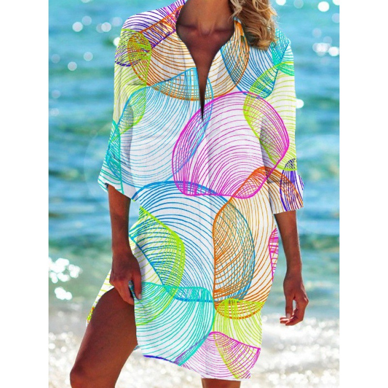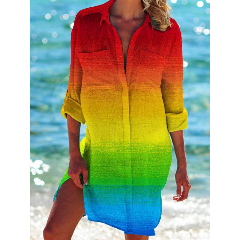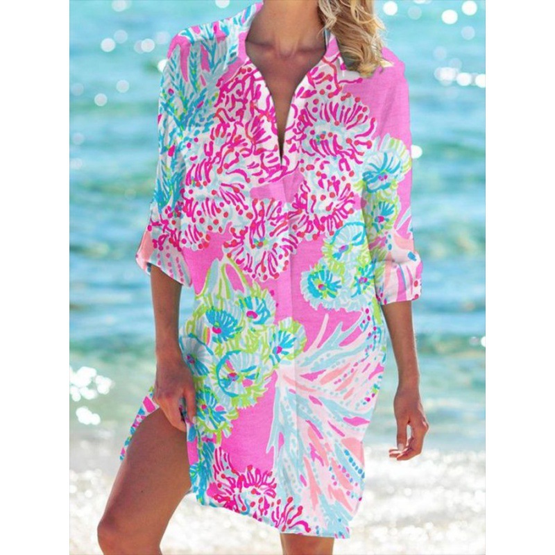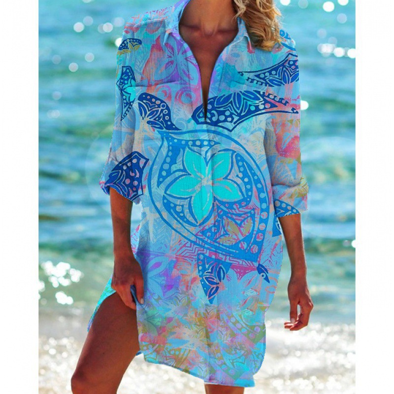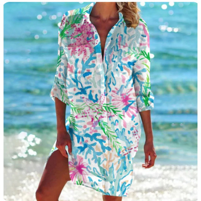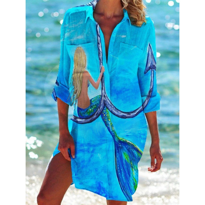 Внешняя торговля Трансграничные 2024 Летняя женская 3d принт бикини рубашка купальник кардиган праздник пляжная рубашка