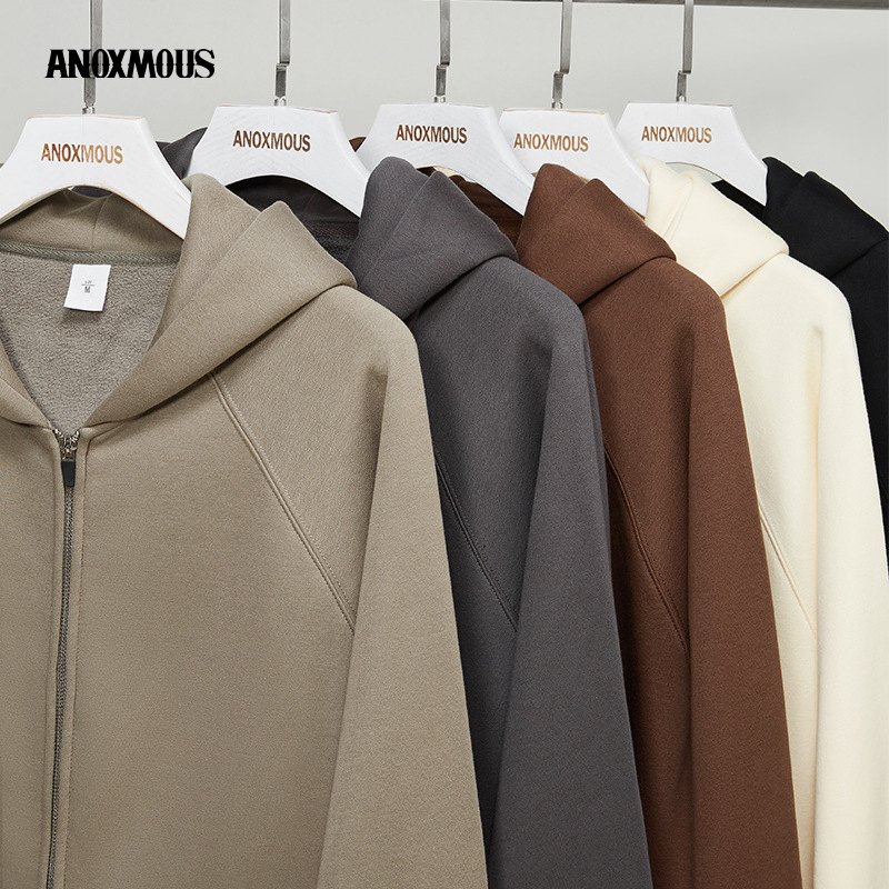 Главная страница > ANOXMOUS модный брендовый свободный свитер с рукавами реглан на молнии, Мужская Тяжелая цельная бархатная флисовая толстовка на молнии 380 г