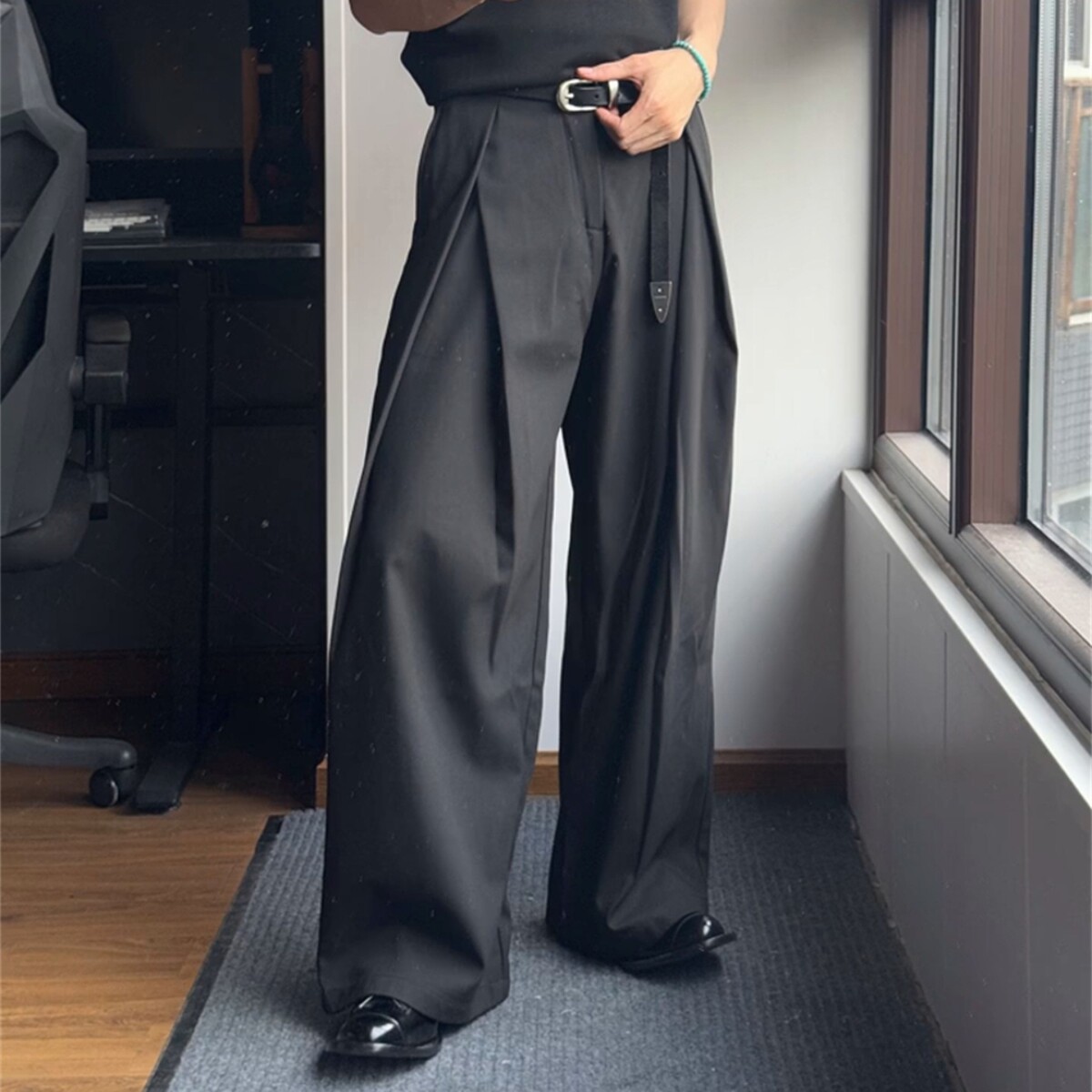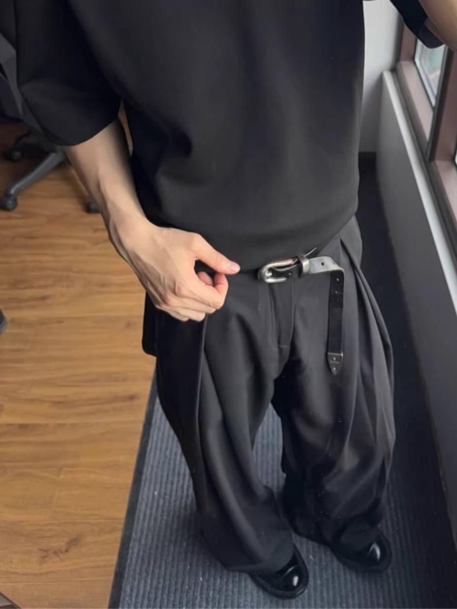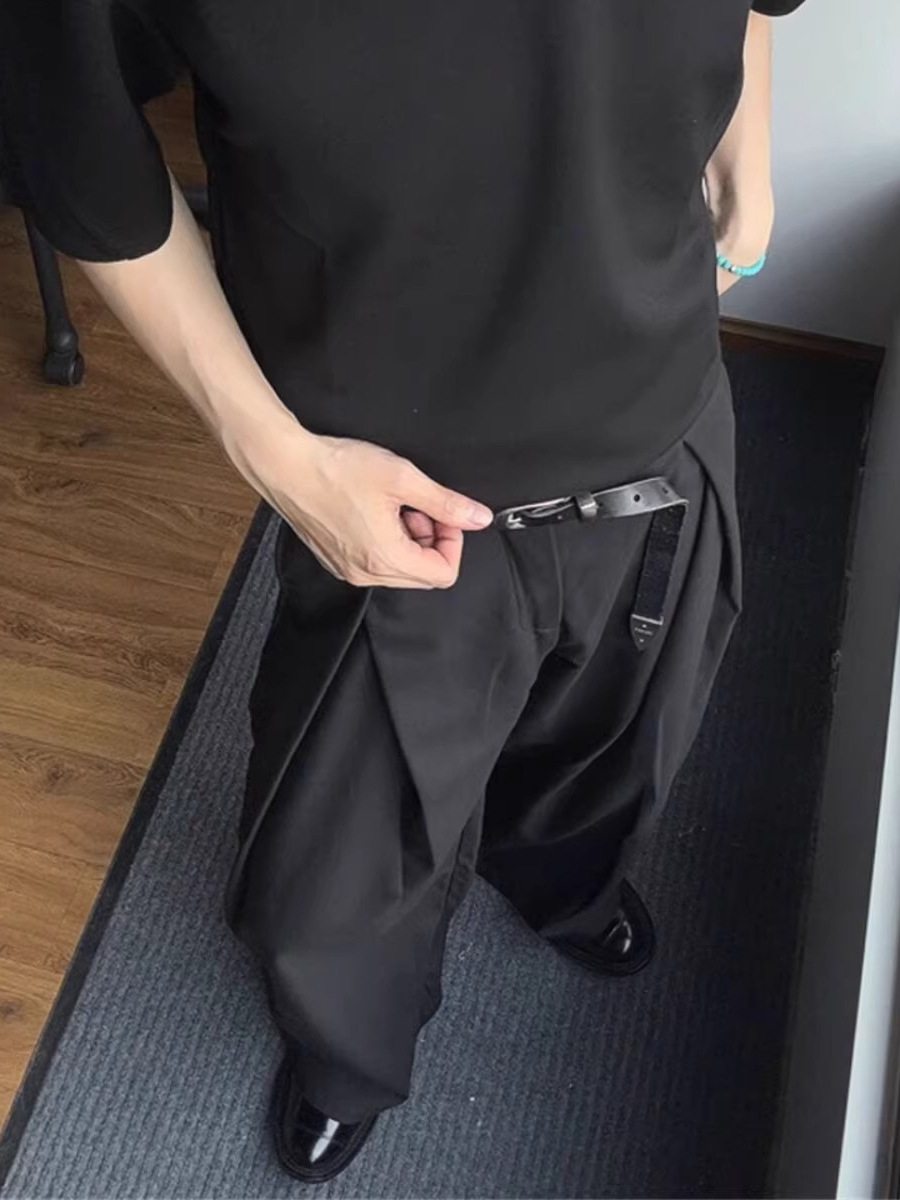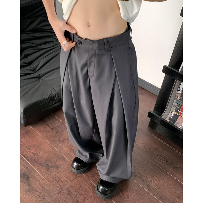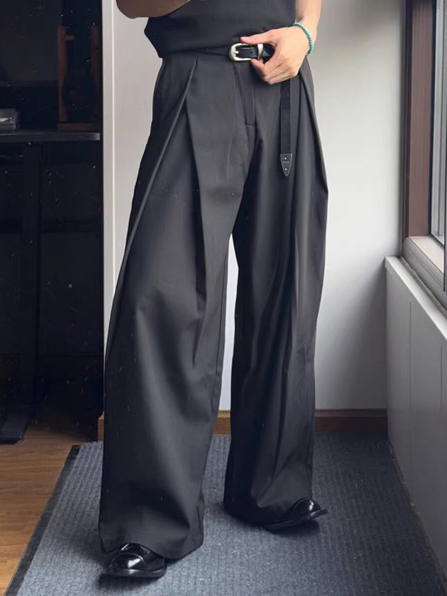Главная страница > Корейские модные трехмерные плиссированные широкие брюки, свободный дизайн, мужские стильные повседневные брюки, модный брендовый драпированный материал