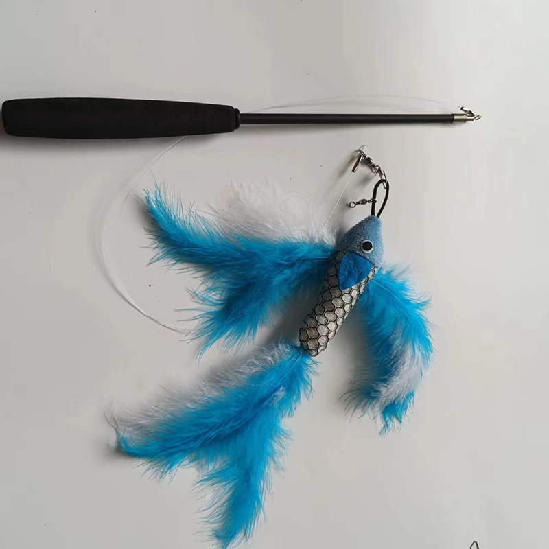 Мини трехсекционный Телескопический Дразнилка для кошек зоотовары игрушки для кошек Сменные летучие рыбки розовые рыбки цвет перьев