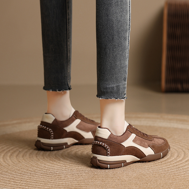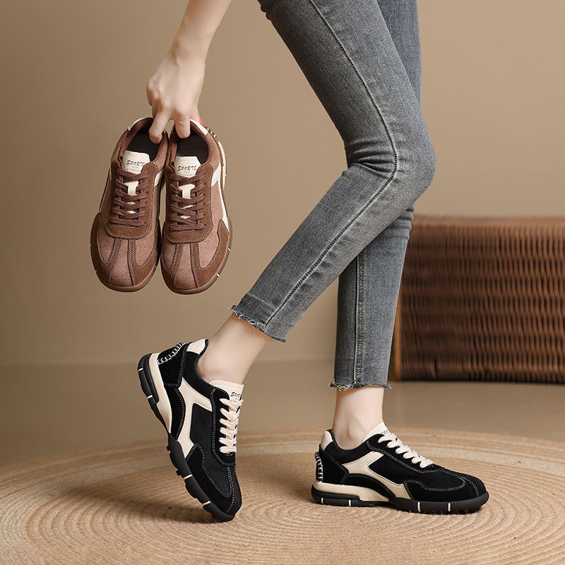 Главная страница > Осень 2025 года. Новые женские тренировочные туфли из натуральной кожи с нескользящей толстой подошвой в немецком стиле, универсальная спортивная повседневная обувь в нишевом ретро-дизайне.