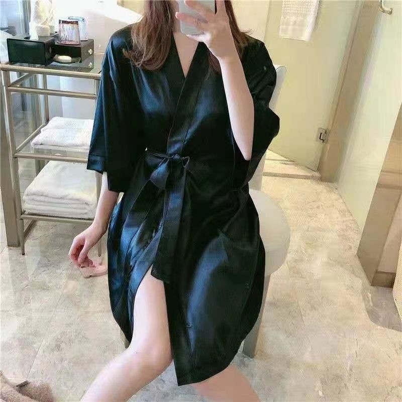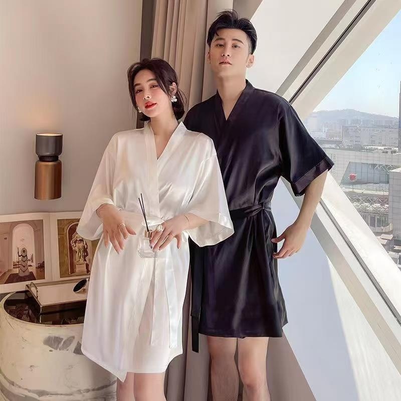 Главная страница > Белая пижама пара весенне-осенний сексуальный халат женская ночная рубашка ледяной халат средний рукав мужской тонкий шелк летний сплошной цвет