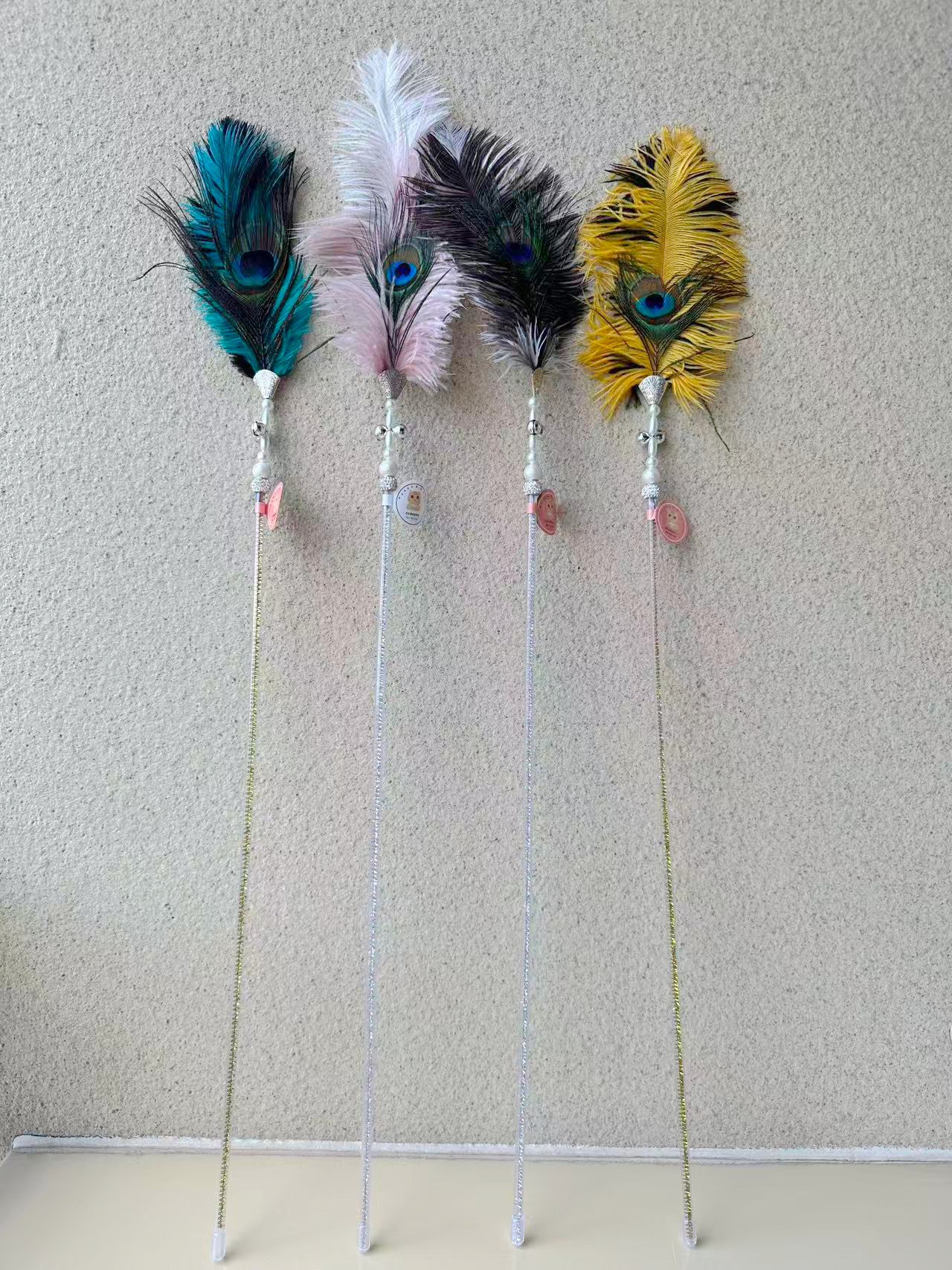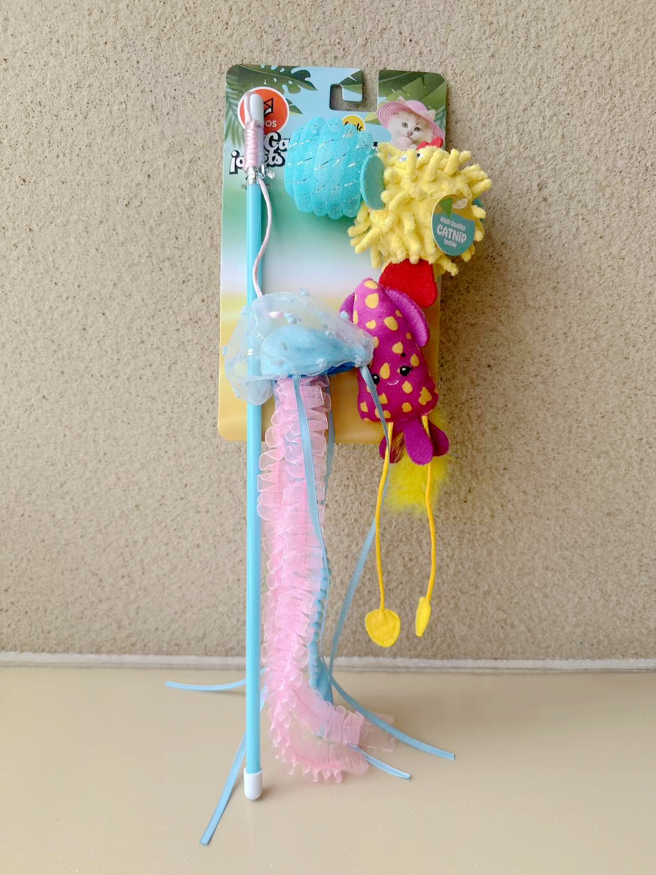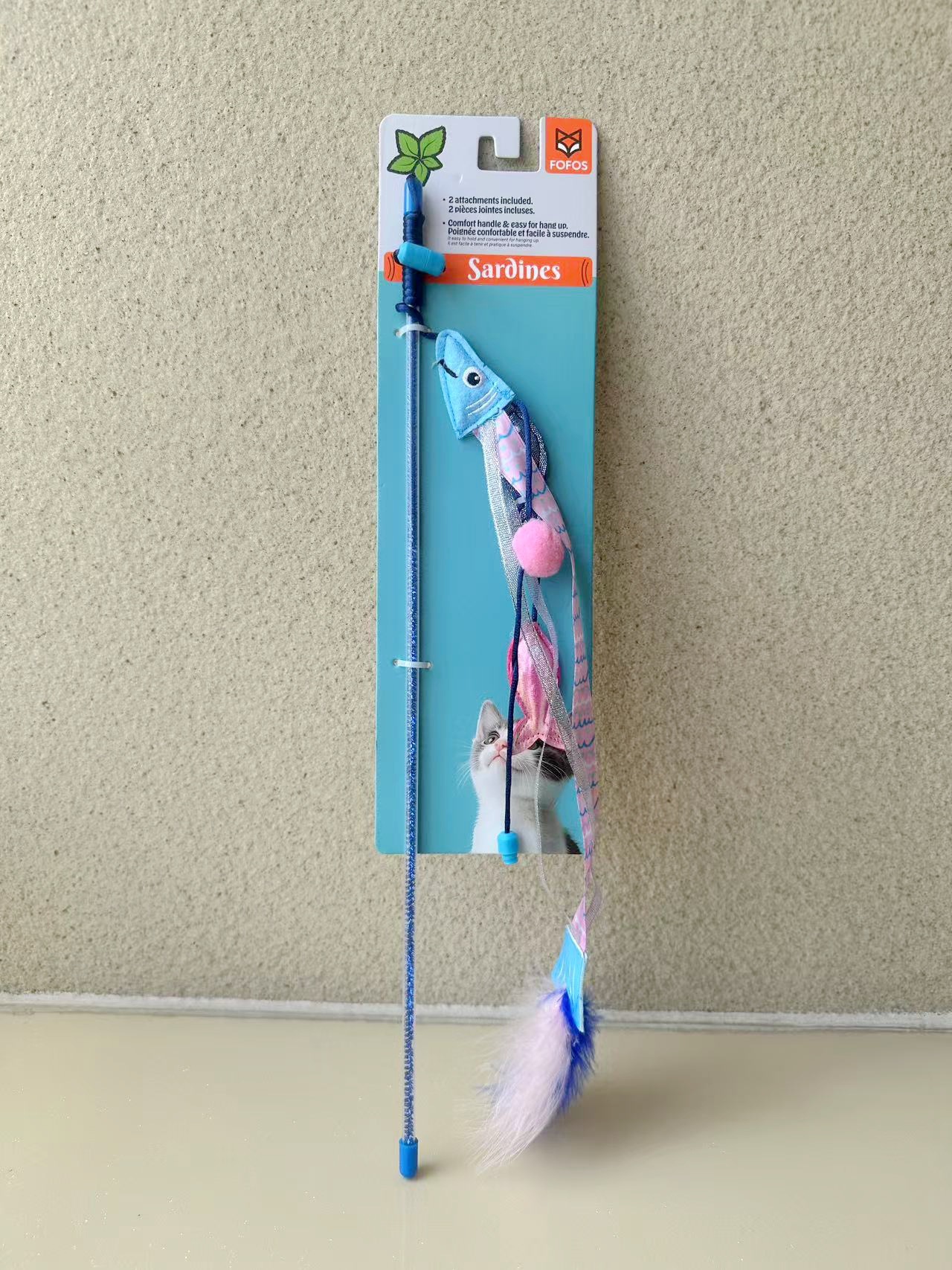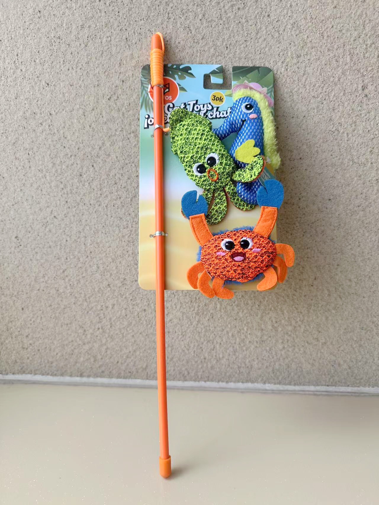 Разноцветная палочка для рыбы и кошки длиной 45 см.