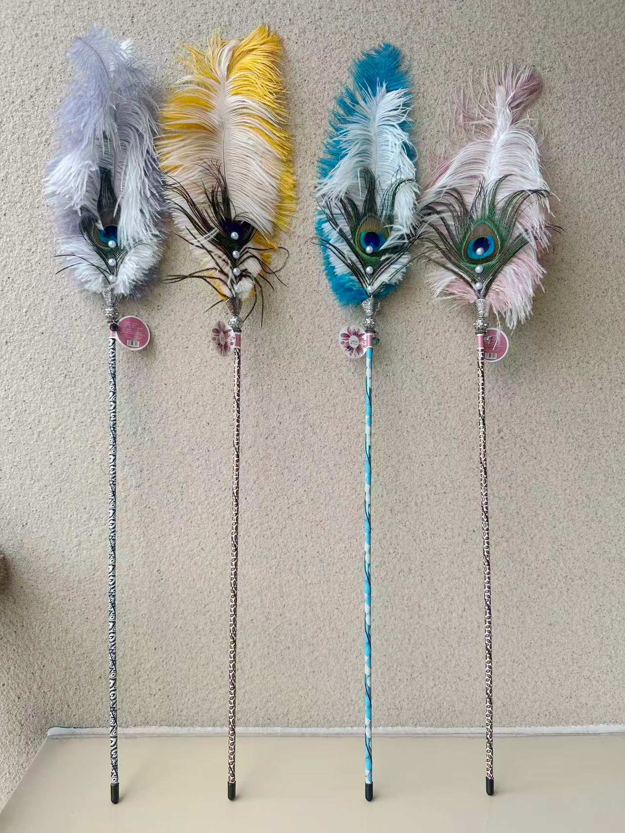 Красочные страусиные перья + павлиньи перья, небольшой размер 70 см.