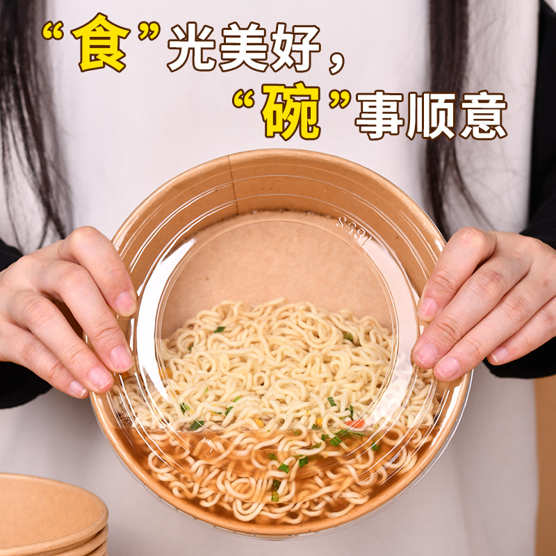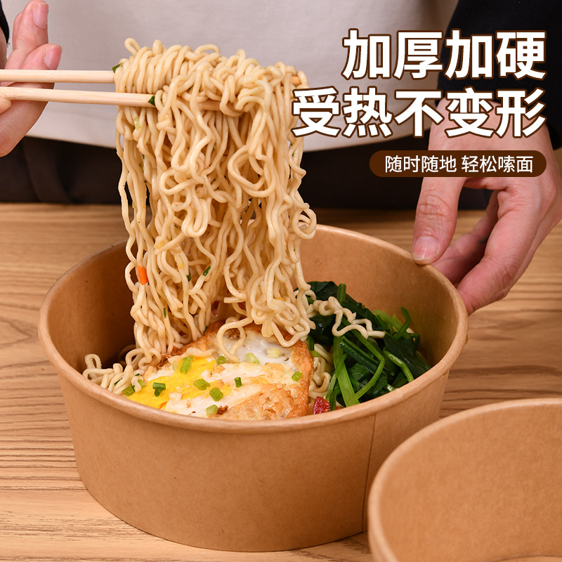 Толстая крафт-бумага миска коммерческая одноразовая упакованная коробка для еды Легкий салат круглый с бумажной крышкой коробка для еды