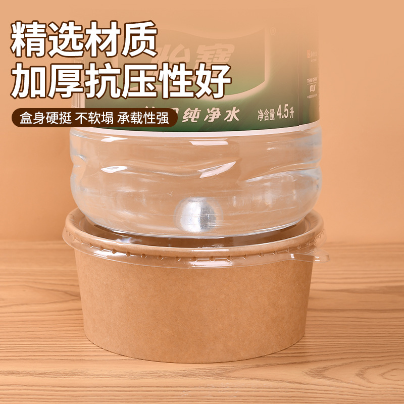 Главная страница > Толстая крафт-бумага миска коммерческая одноразовая упакованная коробка для еды Легкий салат круглый с бумажной крышкой коробка для еды