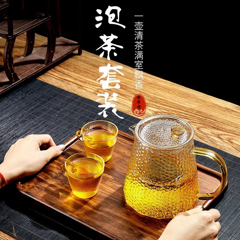 Стеклянный чайник Фильтрующий чайник Бытовой термостойкий утолщенный молоток с рисунком Ароматизированный Чай Электрическая керамическая плита Чайник Чайный набор костюм