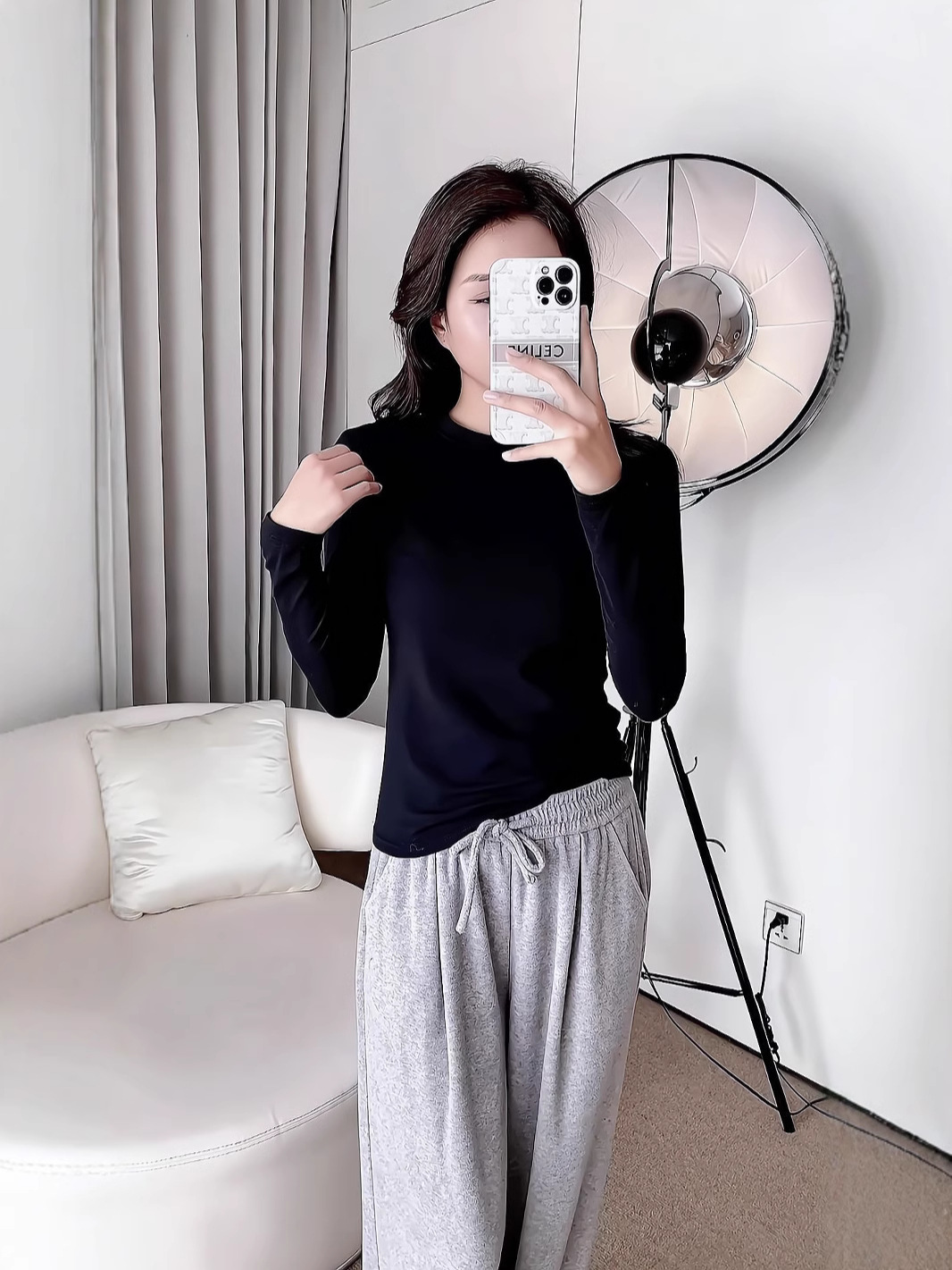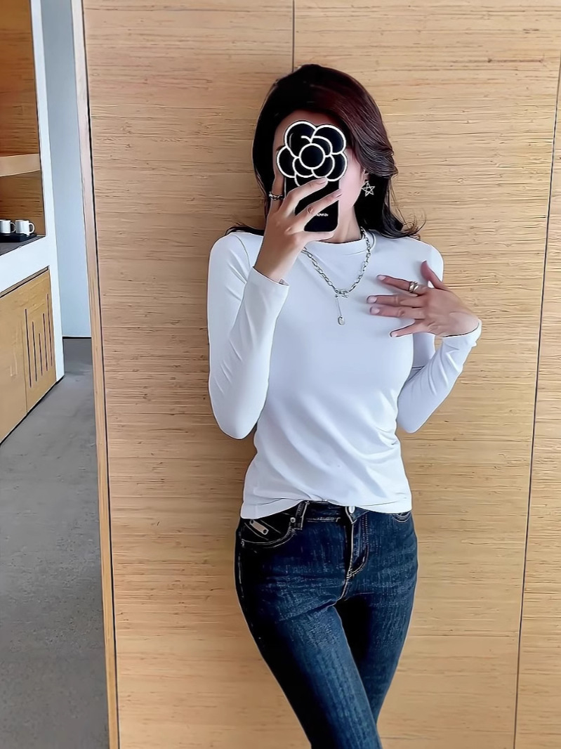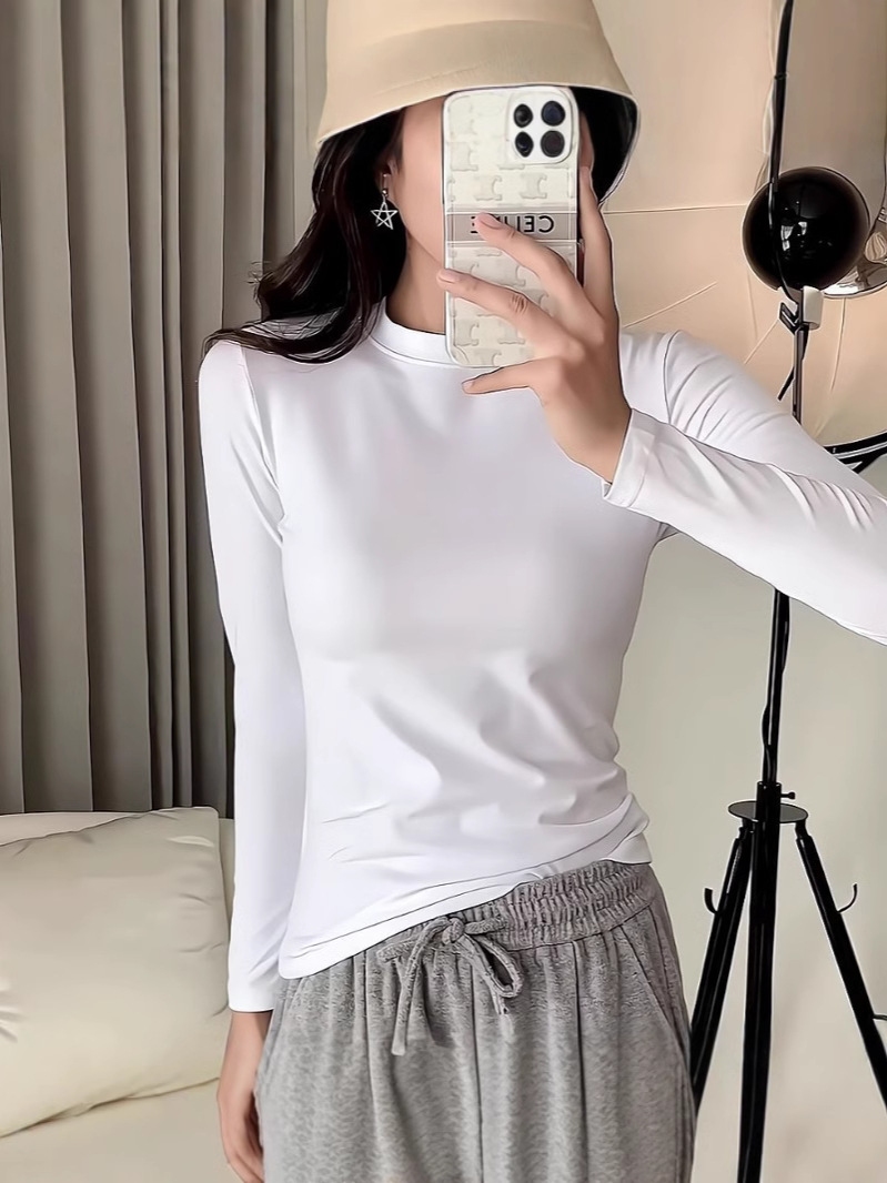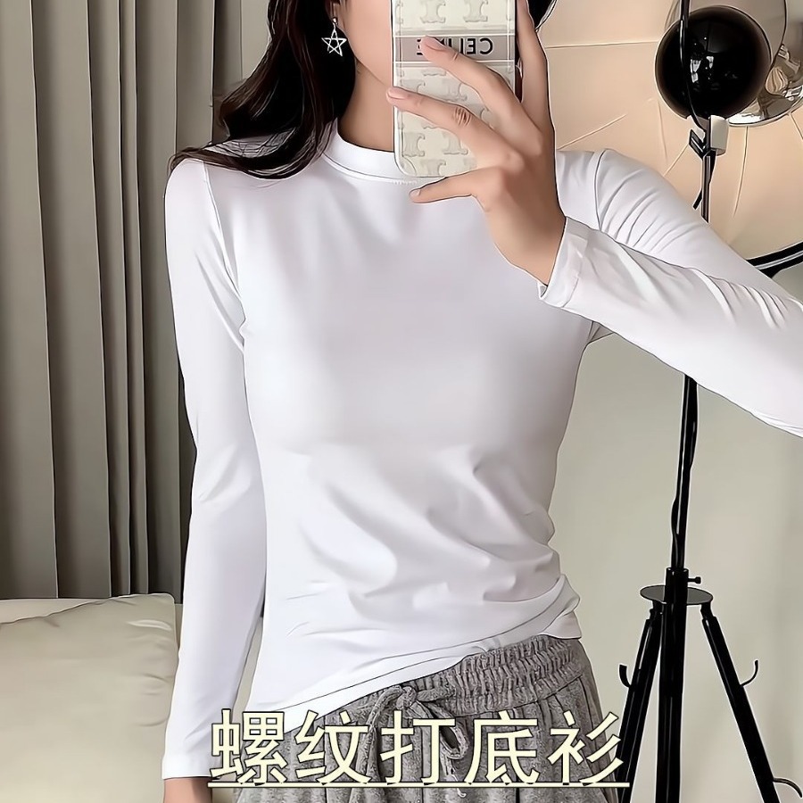 Главная страница > Весенний и осенний сплошной цвет с половинным воротом с высоким воротом футболки с длинными рукавами для женщин с длинными рукавами и тонкими рукавами для 2025 новой хлопковой рубашки