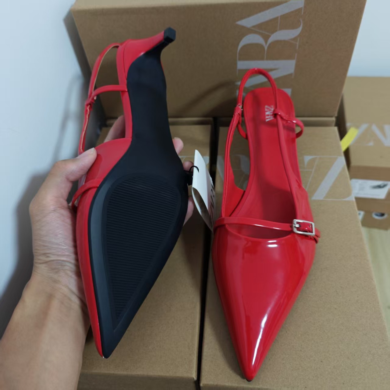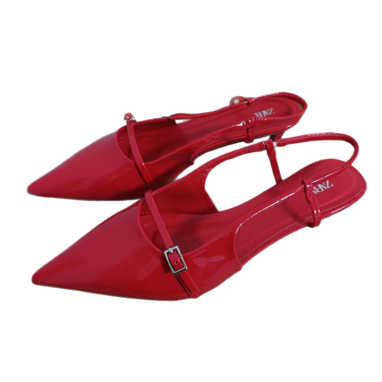 Главная страница > ZA черный каблук на каблуках 2024 новый котенок на пятке с пряжкой ремня 5cm средний каблук