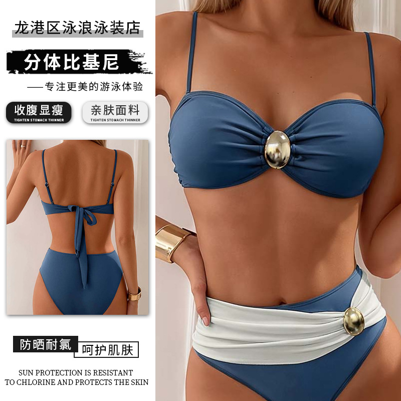 Главная страница > Новый купальник бикини женский сексуальный европейский и американский ретро без спинки модный женский купальник из двух частей для внешней торговли