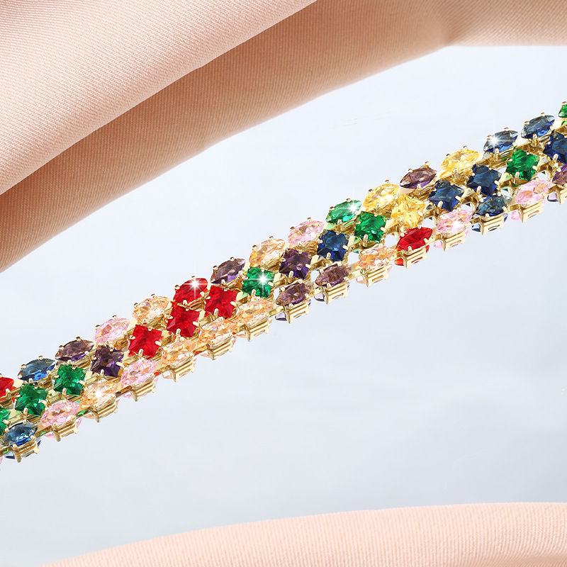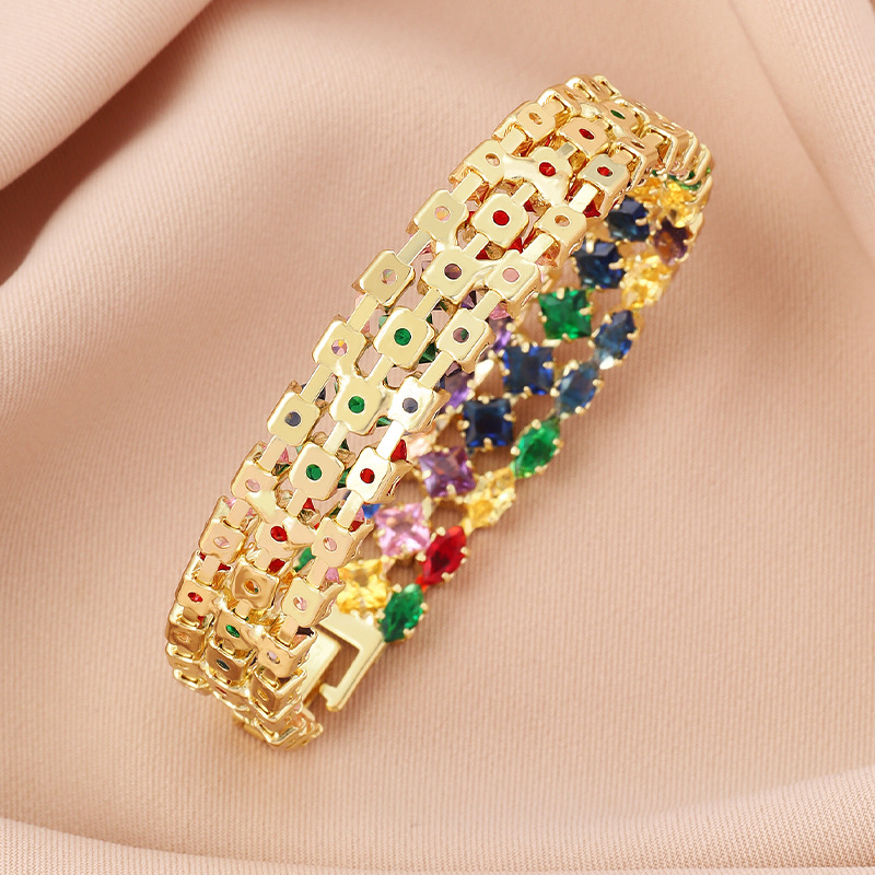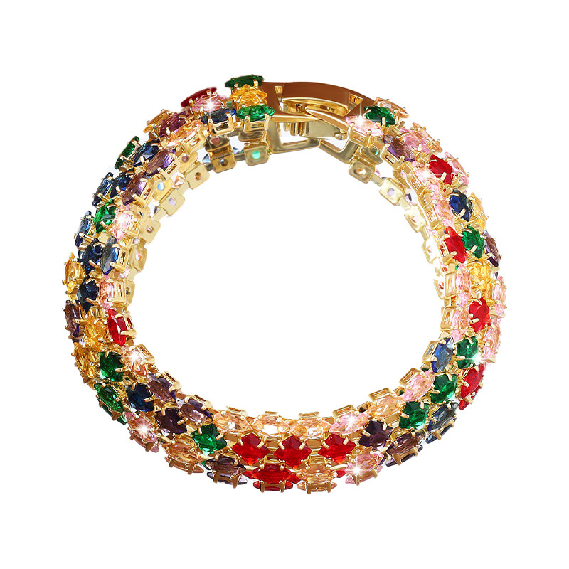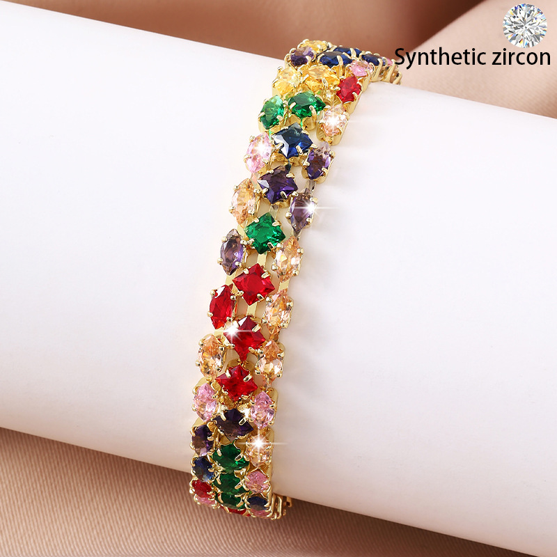 2025 Лето Новый браслет с микровставками из цветных бриллиантов допамина для женщин, легкие роскошные высококачественные супер блестящие модные ювелирные изделия оптом.
