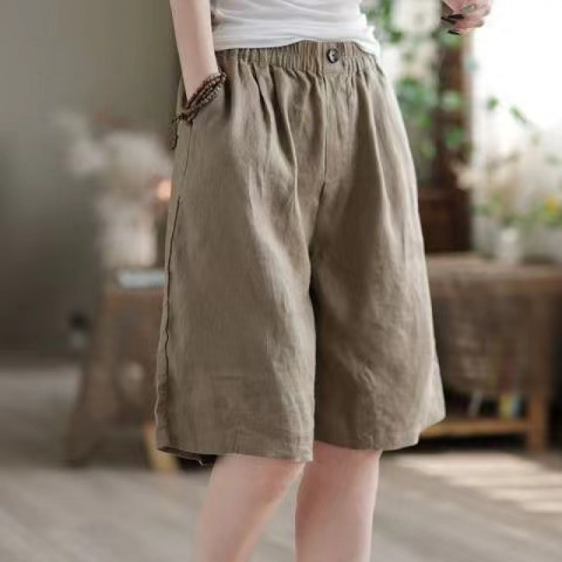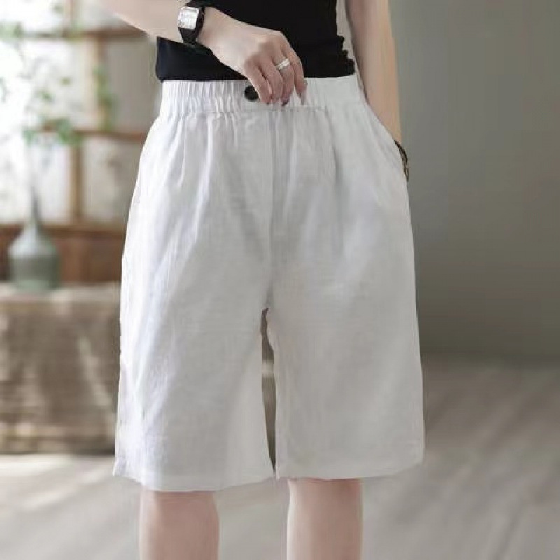 Главная страница > Официальная картина 2025 Летний хлопок и льняные шорты женские укороченные брюки свободные дикие с высокой талией тонкие средние брюки свободные брюки повседневные дети
