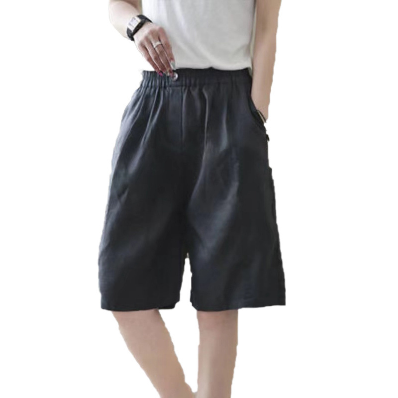 Официальная картина 2025 Летний хлопок и льняные шорты женские укороченные брюки свободные дикие с высокой талией тонкие средние брюки свободные брюки повседневные дети