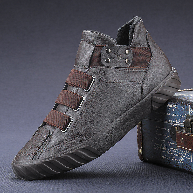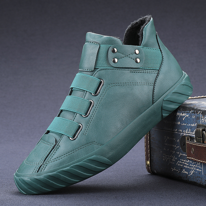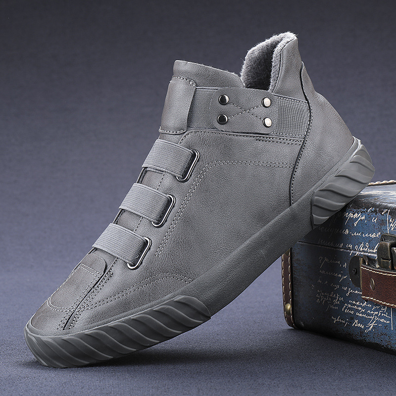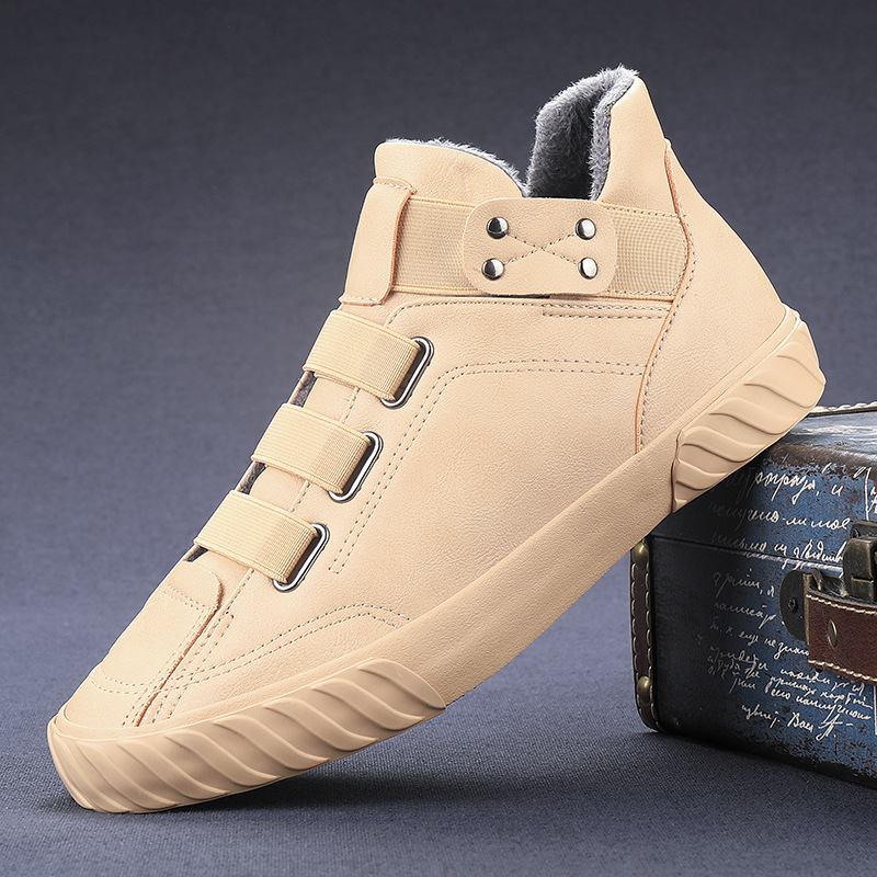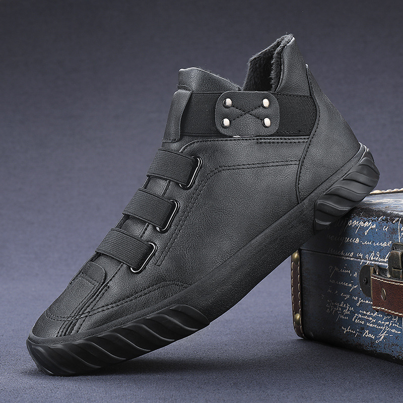 Главная страница > Мужская обувь, Весенняя мужская кожаная обувь, модные ботинки Martin, повседневные подходящие ко всему высокие слипоны, зимние теплые хлопковые туфли с флисовой подкладкой