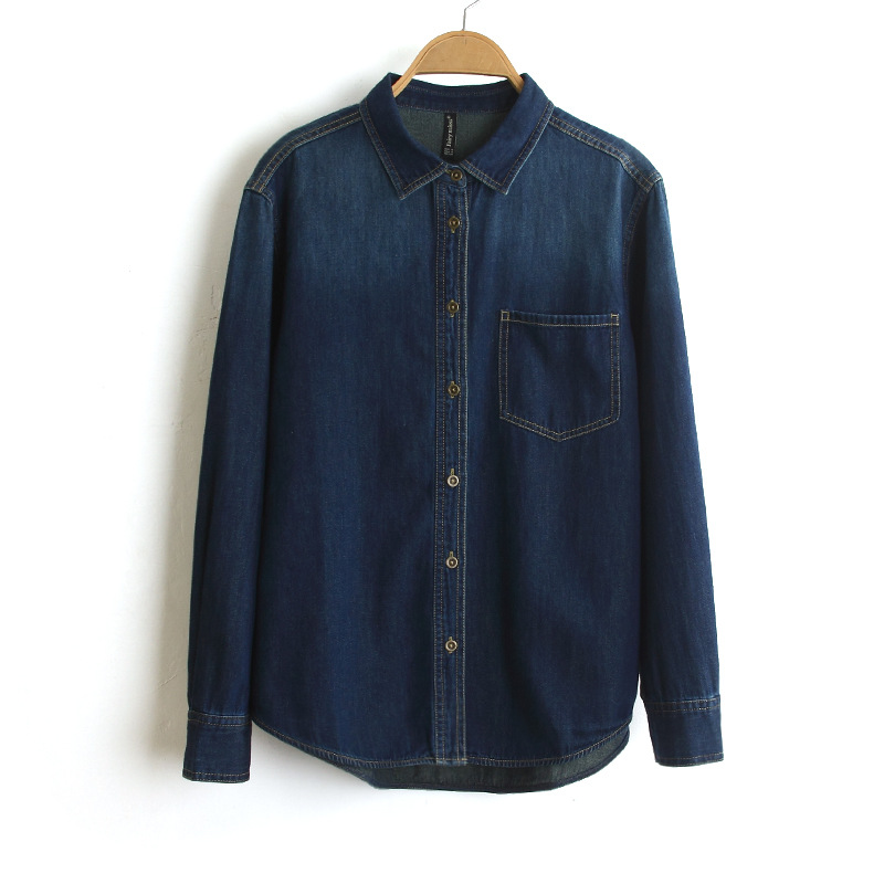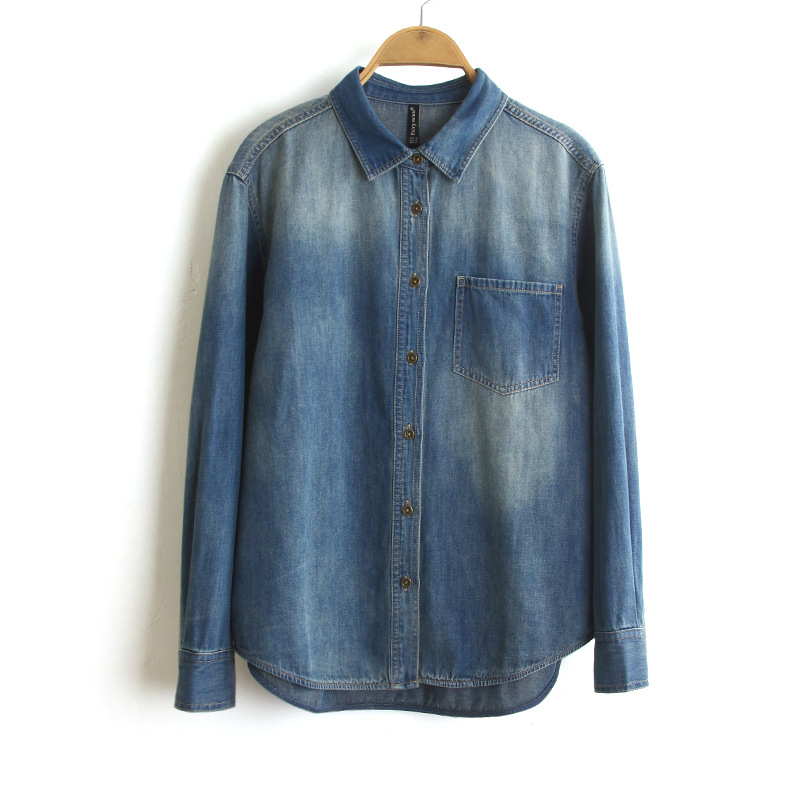 Главная страница > 8925 # Новая осенняя коллекция 2025: Женская джинсовая рубашка свободного кроя с эффектом потертости, двухцветная, с длинным рукавом