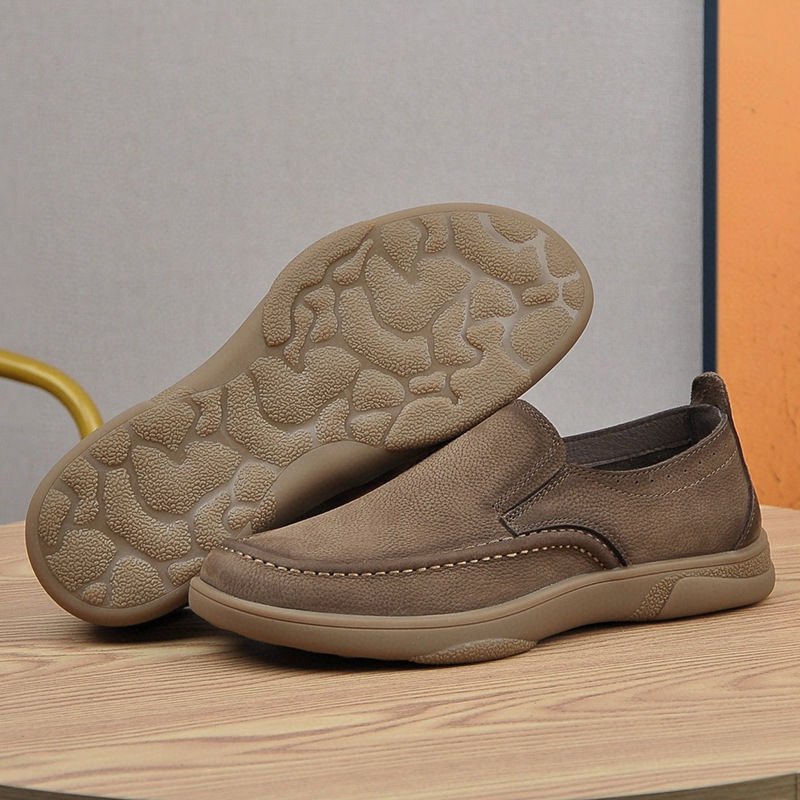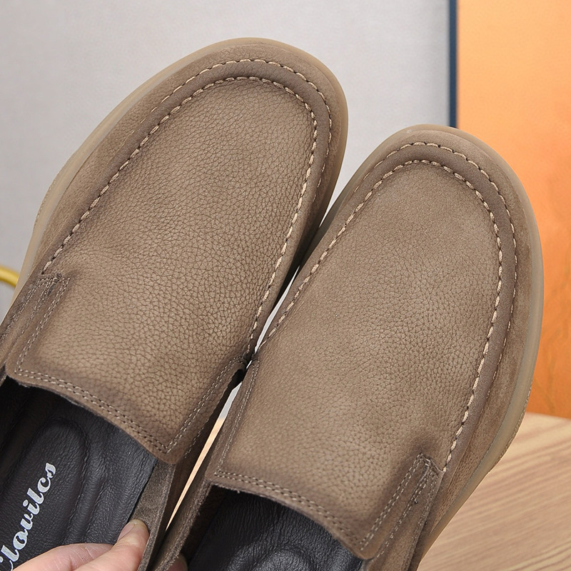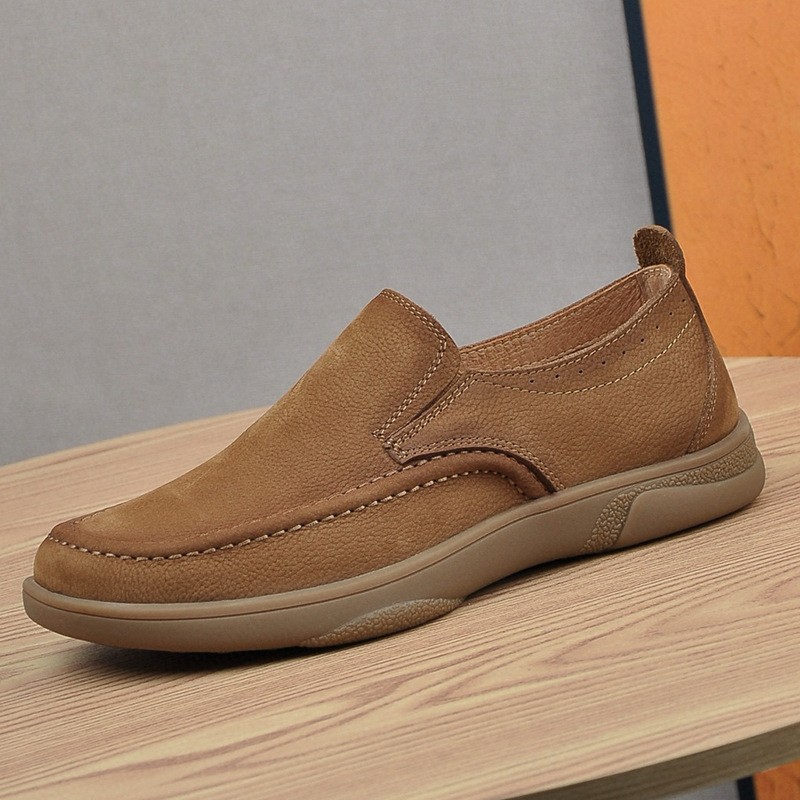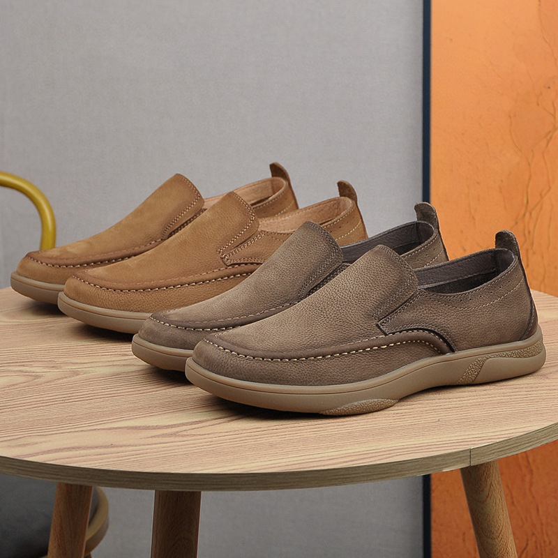Главная страница > Мужская повседневная кожаная обувь для внешней торговли, лоферы без шнуровки из натуральной кожи в британском стиле с мягкой поверхностью, универсальные туфли в стиле ретро.